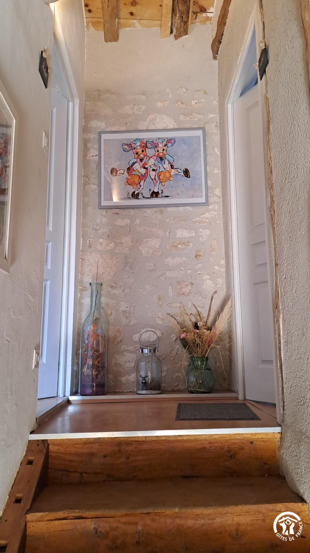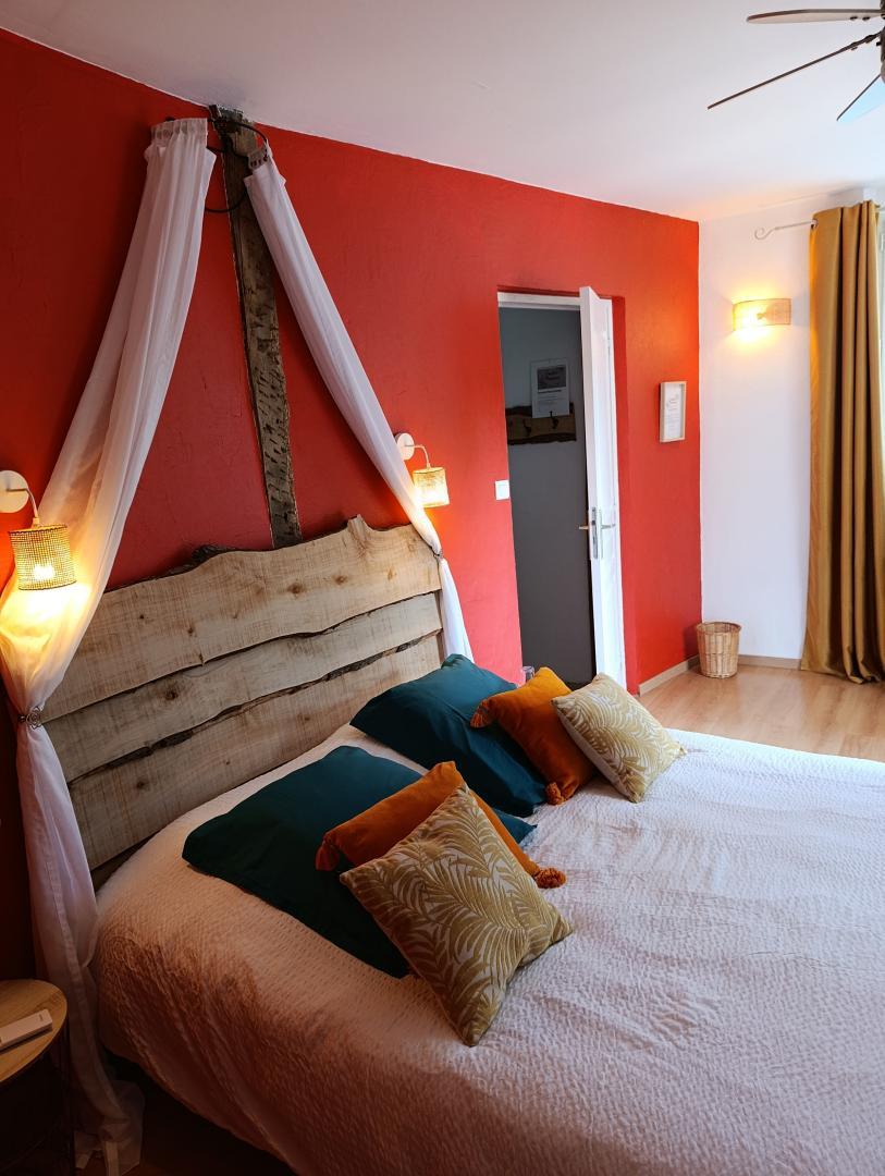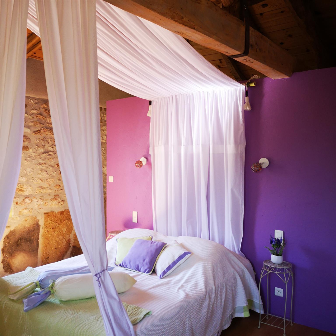 – Chambre Capucine avec lit double en 160cm. Accès à cette chambre depuis un escalier extérieur, ou depuis la chambre Pastel
