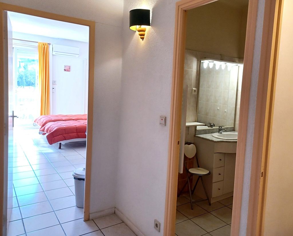Studio, spacieux et lumineux de 30m², situé au 1er étage d’une résidence calme, avec un balcon offrant une vue panoramique sur la rivière. La pièce principale est composée d’un coin cuisine équipée et d’un coin nuit. salle d’eau et WC indépendant. Parking numéroté, wifi, climatisation, bibliothèque, buanderie, local à vélos. Accueil présent 6/7jrs. Piscine extérieure dans un jardin de 1000m2.