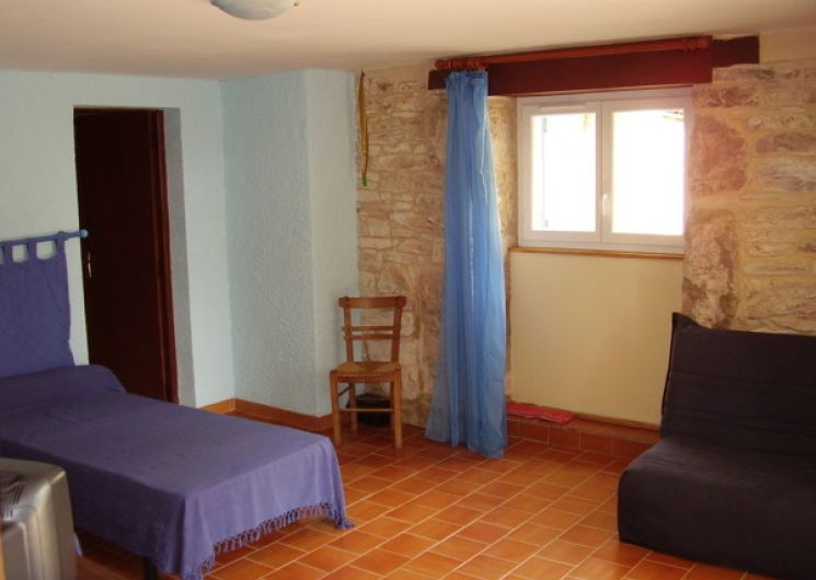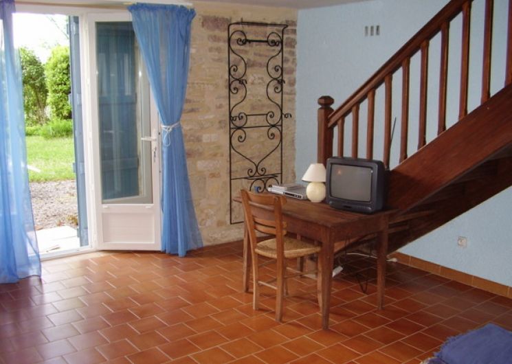 Rez de chaussée : vestibule – cuisine intégrée – salle de séjour avec coin salon – 1 grande chambre – salle d’eau – WC indépendants. Rez de jardin : 1 grande chambre (canapé 2 places) – WC et lavabo.