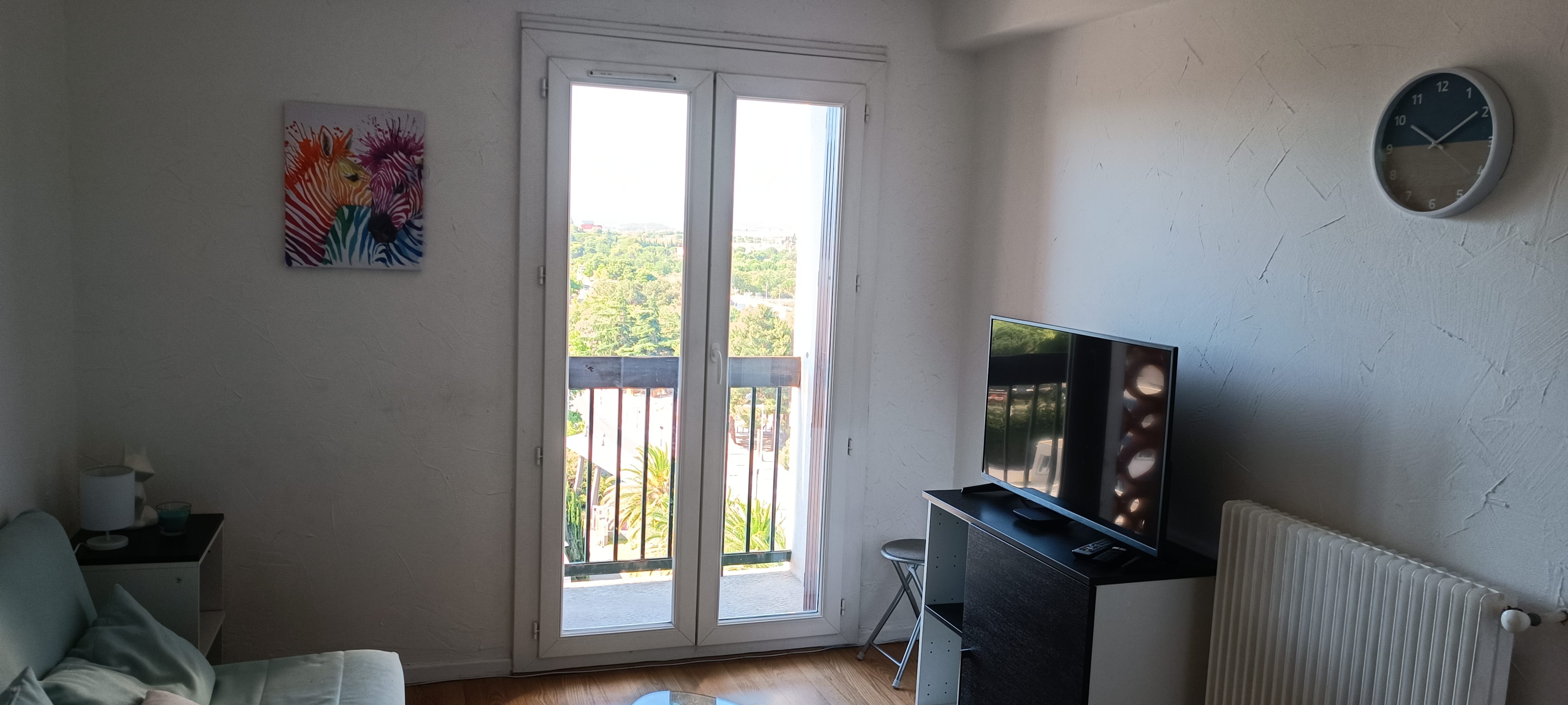 Bienvenue dans la charmante ville de Perpignan, Vous séjournerez dans un quartier à la périphérie du centre-ville de la capitale des Pyrénées -rientales. Ce charmant petit appartement pratique et agréable, saura ravir les amateurs de balades citadines entre autres. A deux pas du parc des sports et de la piscine, à 15 mn des plages. Au 7e étage de cet immeuble avec ascenseur, vous attend : un salon séjour cuisine ouvert avec une petite terrasse et une chambre avec balconnet. N’hésitez plus et venez à la découverte des merveilles de notre région!