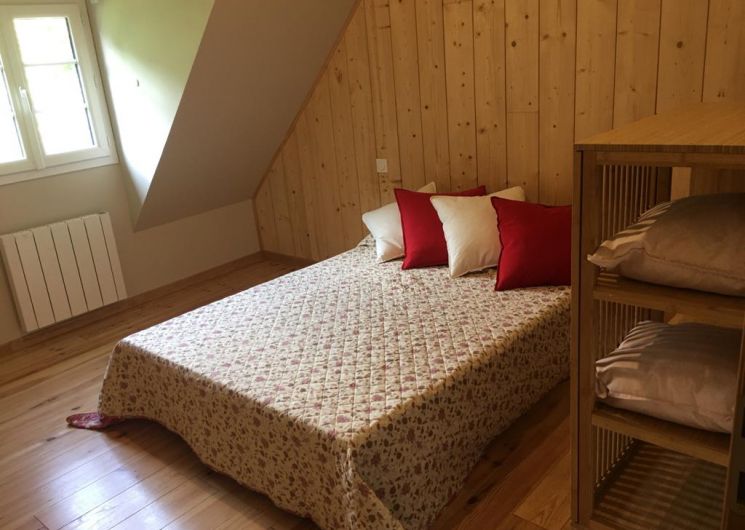 Le chalet a une capacité de 6 personnes maximum et il se compose : – Au RDC : Une cuisine équipée, salle à manger (four, plaques, micro onde, vaisselle, lave vaisselle, four à pain), salon (TV, poêle à granulés), une buanderie, un WC, un balcon équipé (grill) – Au premier étage : 2 chambres doubles, dont une avec 2 lits superposés, 1 canapé lit dans un hall ouvert, un cabinet de toilette ; un lit parapluie est disponible. – Extérieur : parking, jardin Équipé en wifi et chrome cast!