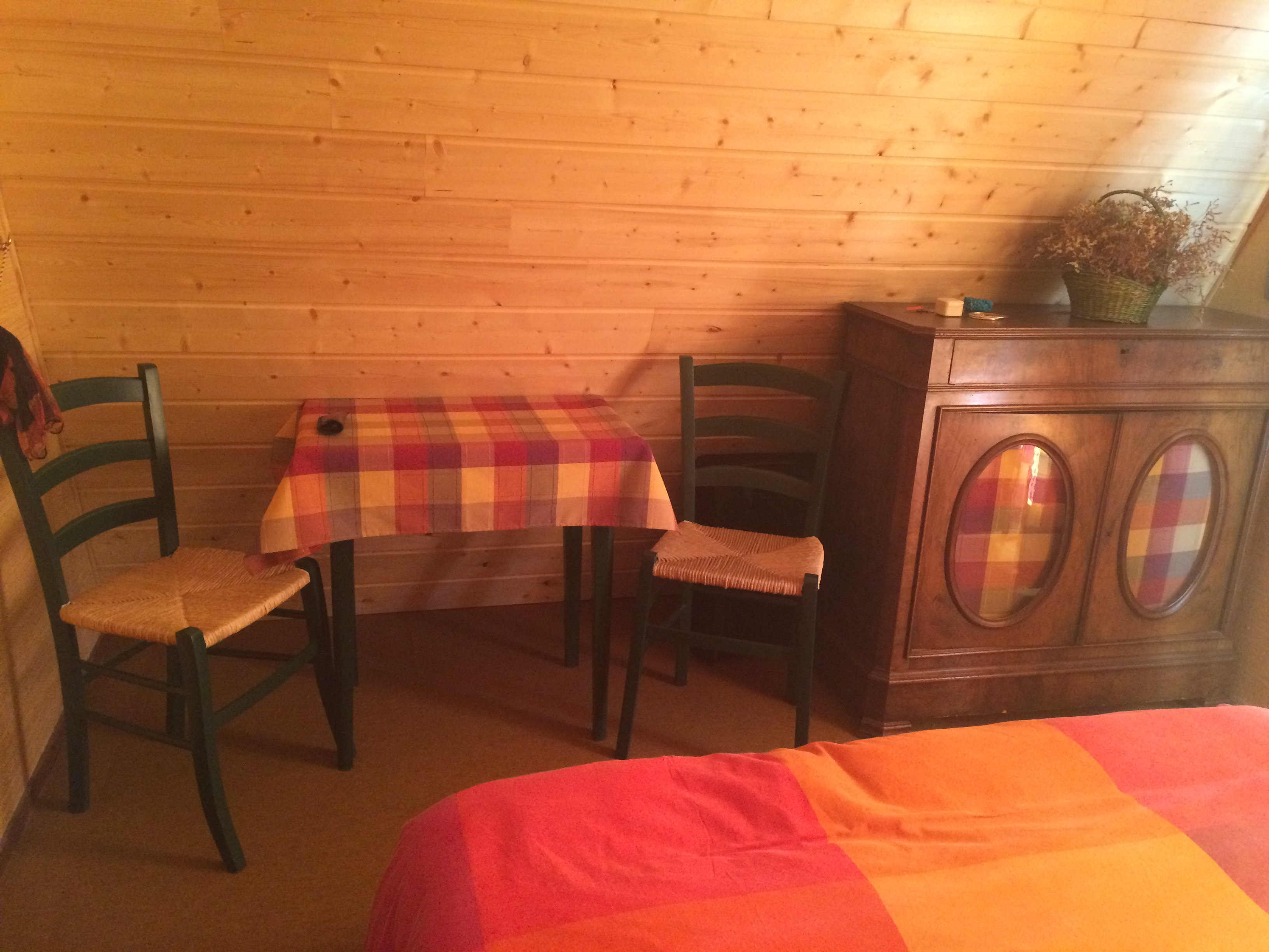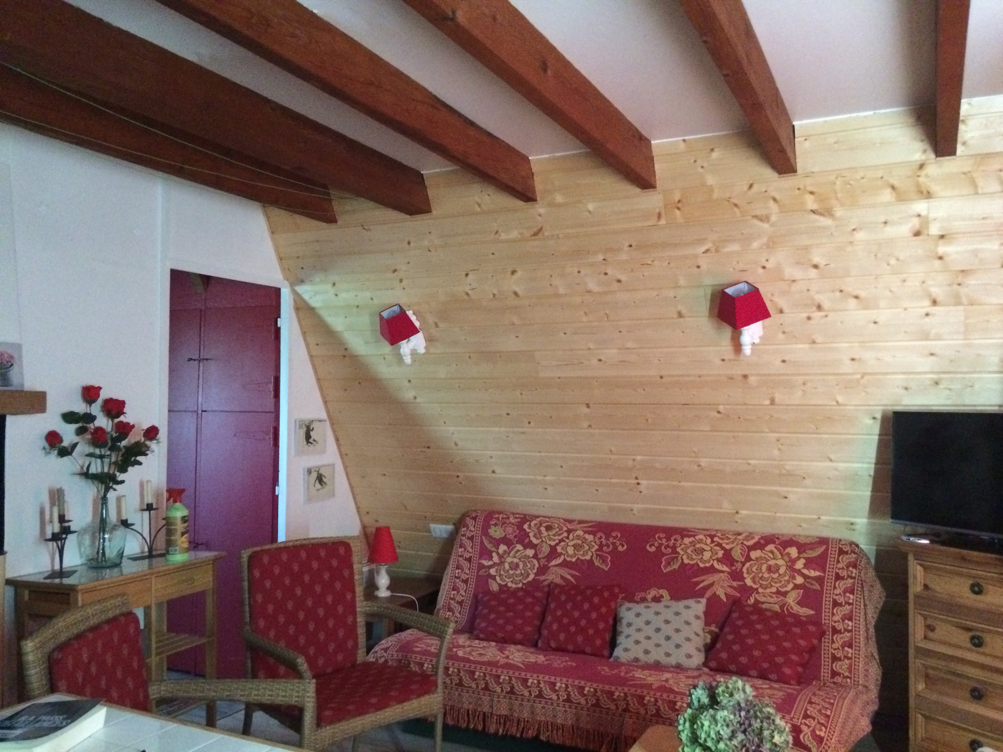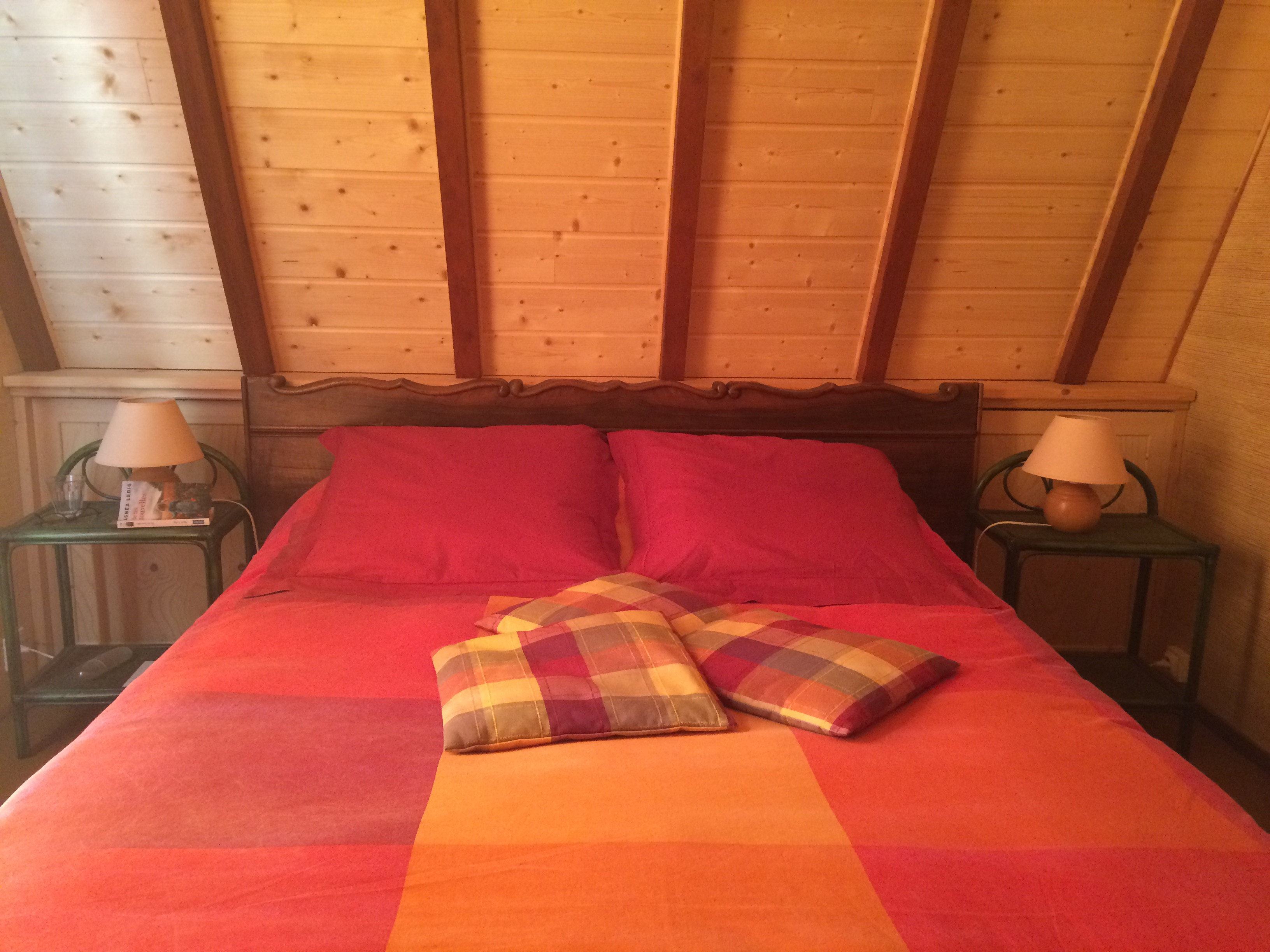 Chalet de 70 m² à étage comprenant : Rez-de-chaussée, une cuisine , un séjour avec poêle à granules. A l’étage, 2 chambres (1 lit en 140 et 1 lit en 130). La location bénéficie d’un parking privé.