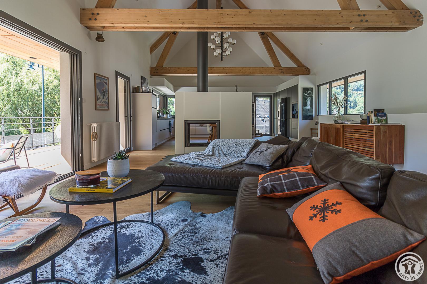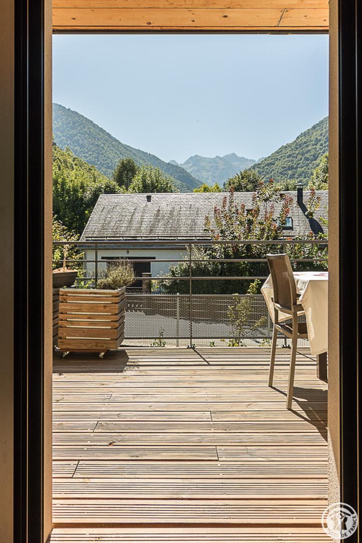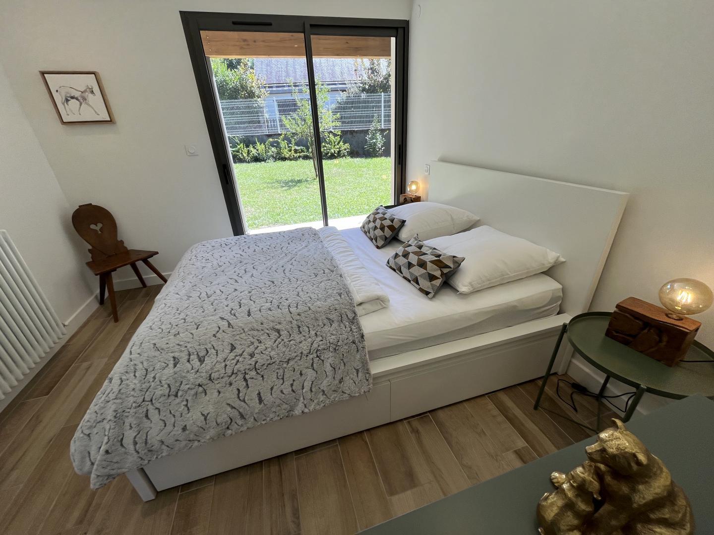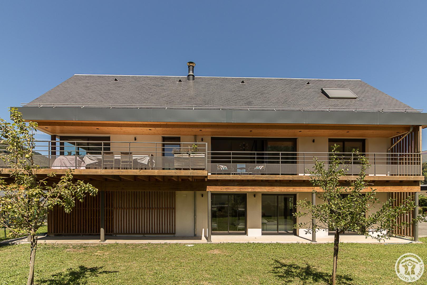 Le gîte est aménagé dans une villa contemporaine tournée plein Sud vers les sommets, au calme, dans un quartier résidentiel. L’espace extérieur, de 700m², propose un jardin enherbé, planté de fruitiers, une cour et un abri couvert pour le stationnement des véhicules.