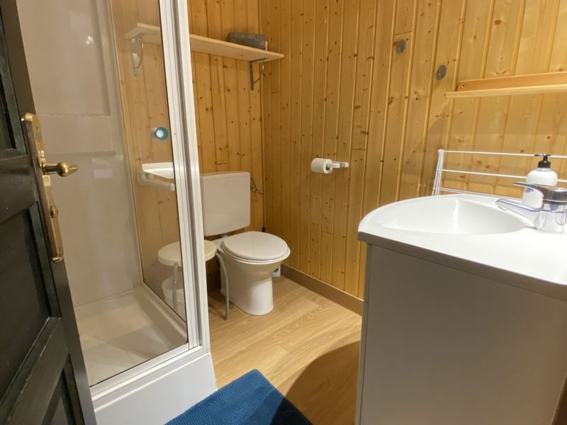 Le logement dispose d’un salon avec une cuisine ouverte. Dans le salon vous trouverez une cheminée (possibilité d’acheter du bois à l’accueil du Chalet) un canapé-lit, + un canapé. Dans la cuisine : lave-vaisselle, lave-linge séchant, four, four micro-onde, cafetière filtre et Senseo, bouilloire, batteur électrique. Un première chambre avec un lit simple et un lit superposé + une chambre avec un lit en 140. Une salle de bain avec douche et wc. Vous avez accès à une terrasse privative avec table, transat et parasol à disposition. Vous pouvez disposer de jeux de société, luges, bois, linge de maison, etc. à l’accueil.
