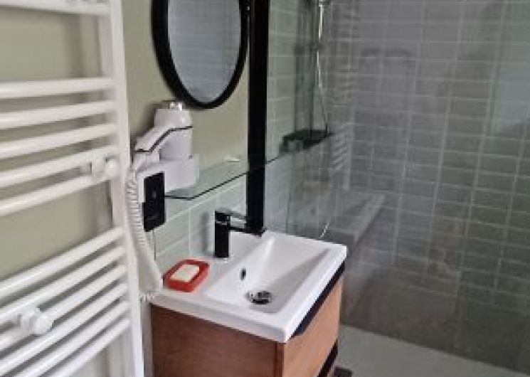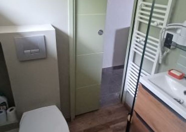 Votre hébergement : Maison mitoyenne d’une superficie de 37m². Au rez-de-chaussée : – sas d’entrée – Séjour et salon avec canapé et 2 fauteuils, téléviseur écran plat – Cuisine ouverte équipée (cocotte minute, mixeur, appareil à raclette) – 1 salle d’eau (douche, sèche-chevaux ) avec WC – Terrasse bois – A l’étage une chambre avec 2 lits de 90 et une mezzanine avec 1 lit de 140 .