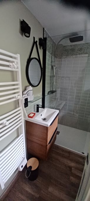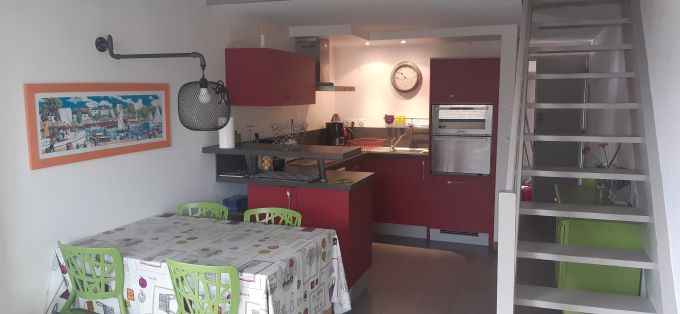 Votre hébergement : Maison mitoyenne d’une superficie de 37m². Au rez-de-chaussée : – sas d’entrée – Séjour et salon avec canapé et 2 fauteuils, téléviseur écran plat – Cuisine ouverte équipée (cocotte minute, mixeur, appareil à raclette) – 1 salle d’eau (douche, sèche-chevaux ) avec WC – Terrasse bois – A l’étage une chambre avec 2 lits de 90 et une mezzanine avec 1 lit de 140 .