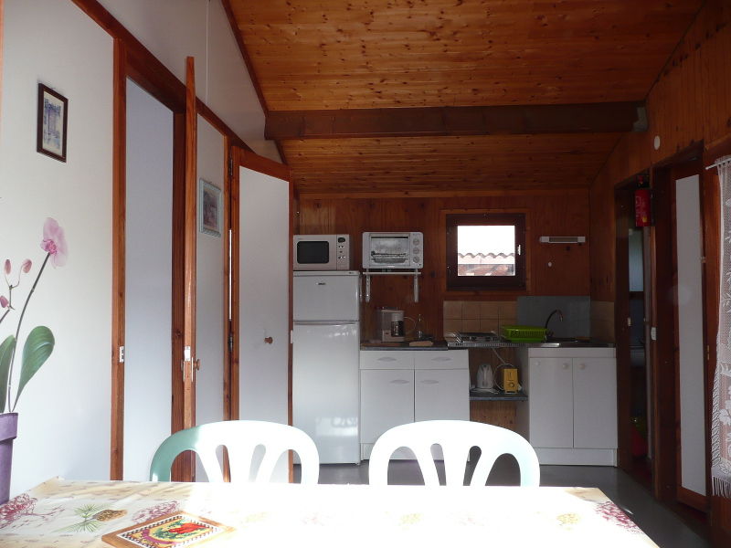 Chalet bois indépendant. T3 de plaind pied comprenant : 1 séjour/coin cuisine – 2 chambres (lit 140)(2 lits 90) – 1 salle d’eau/wc séparés.Ensemble de 10 chalets au pied du Canigou – Ambience calme et familiale, dans un écrin de verdure, idéal pour les vacances en famille, les cures thermales (1km de Vernet, 15km de Molitg), les randonnées en couple ou en groupe (proche des sentiers de randonnées).