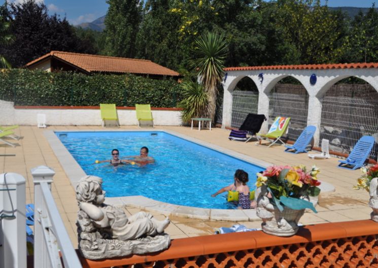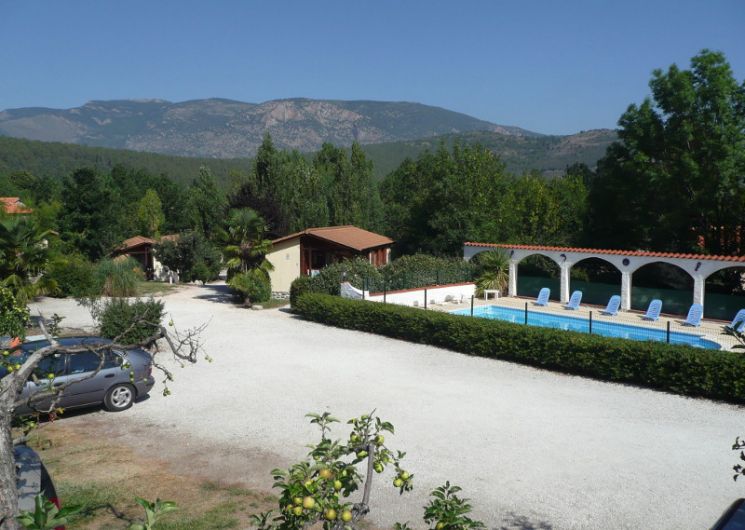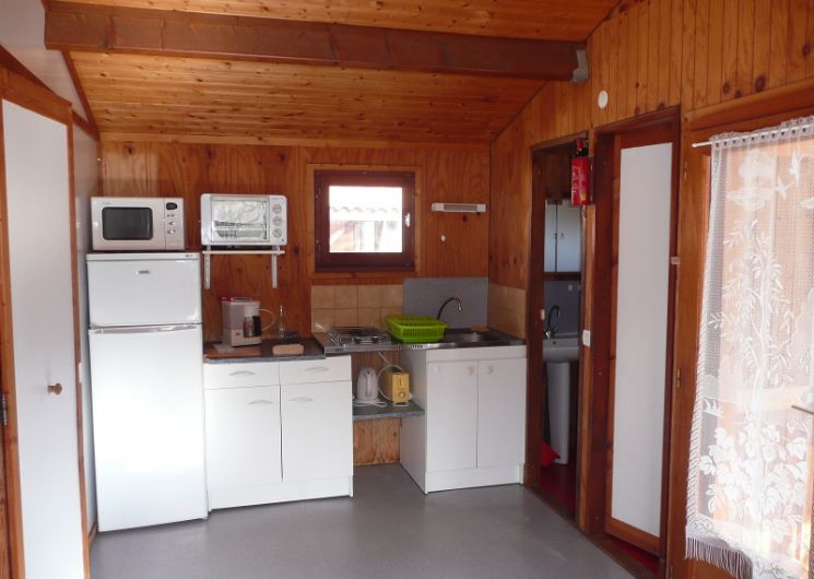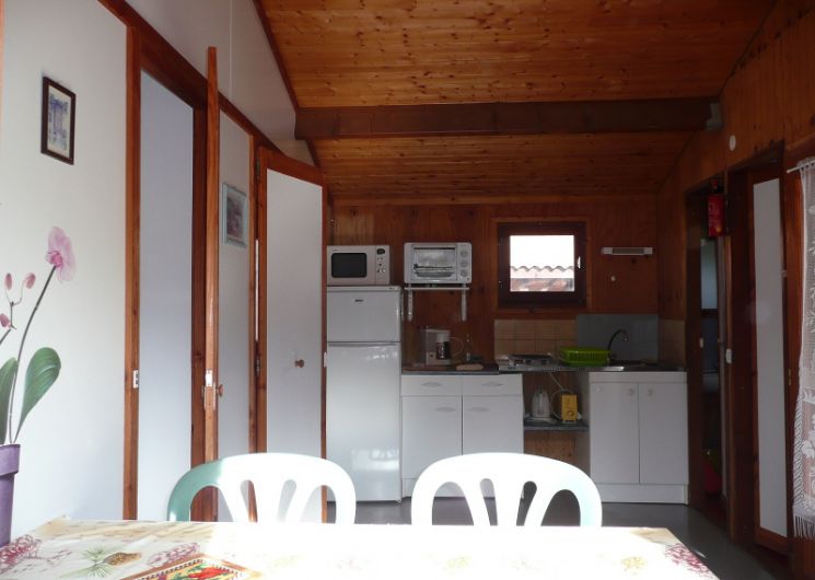 Chalet bois indép. T3 de plain-pied comprenant : 1 séjour/coin cuisine – 2 chambres (lit 140)(2 lits 90) – 1 salle d’eau/wc séparés.Ensemble de 10 chalets au pied du Canigou – Idéal pour des vacances familiales – Proche des sentiers de randonnées et proche villes thermales.