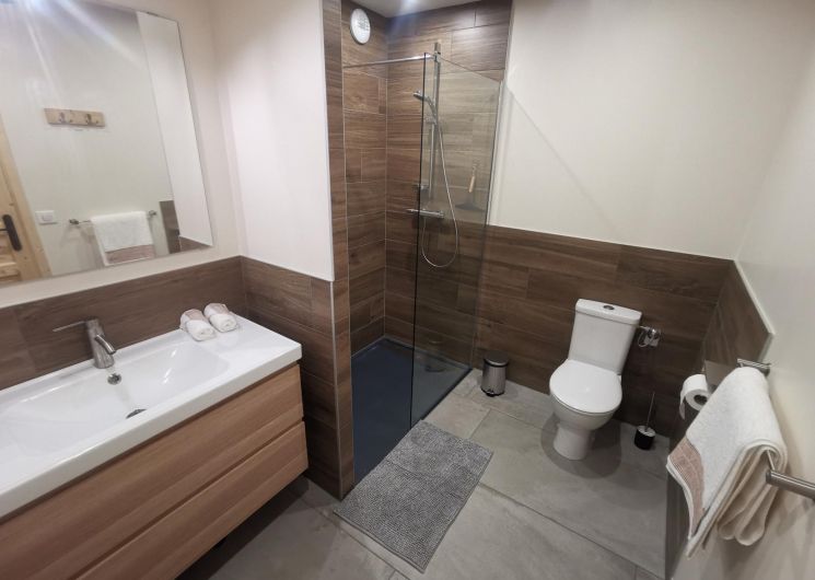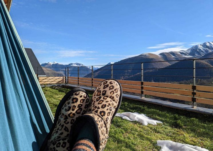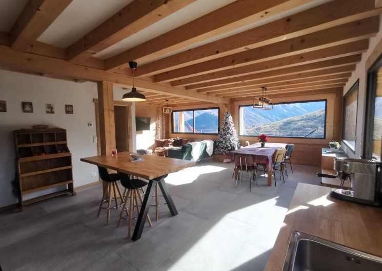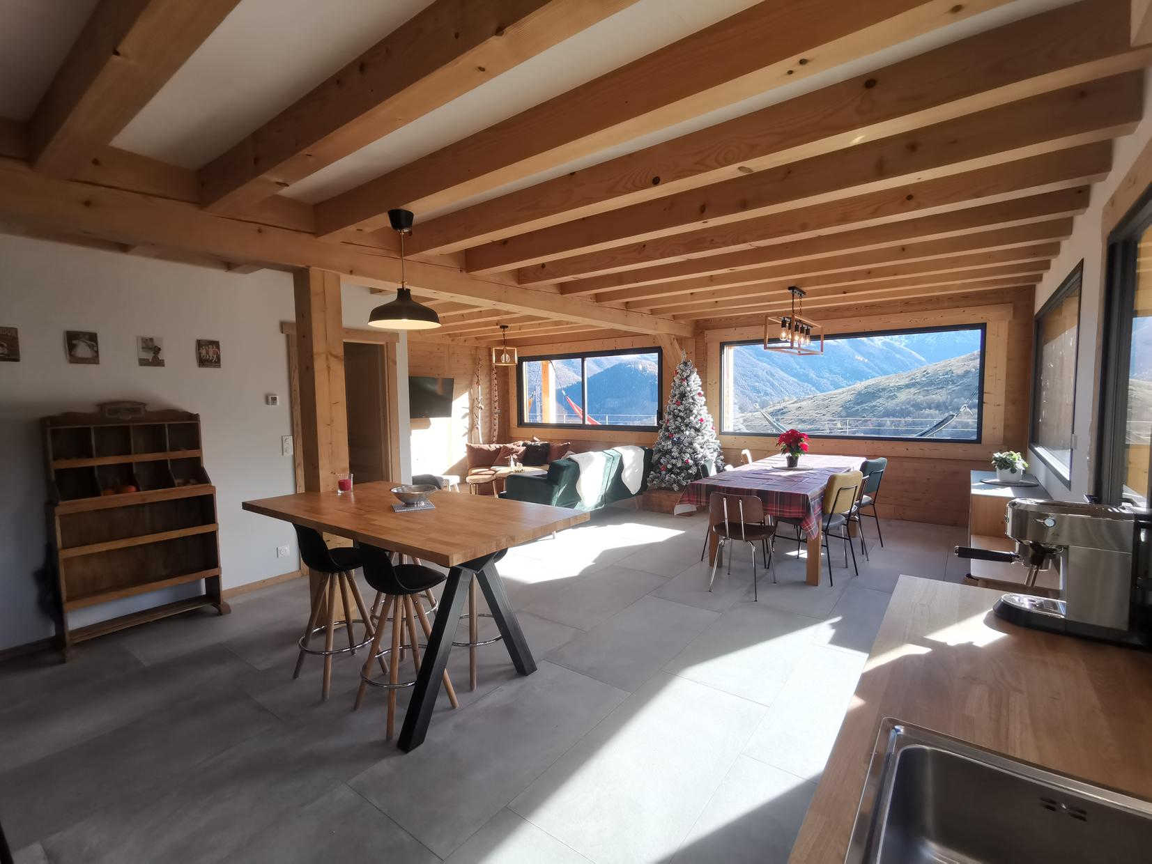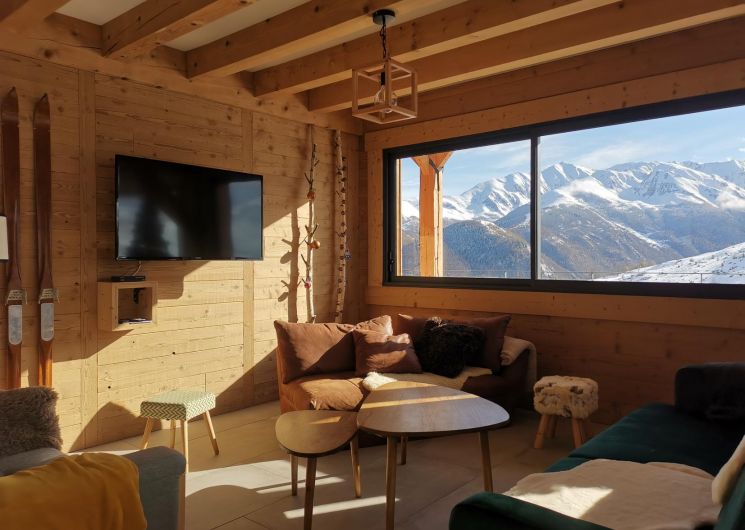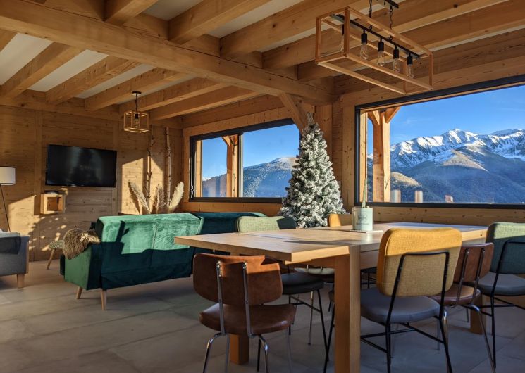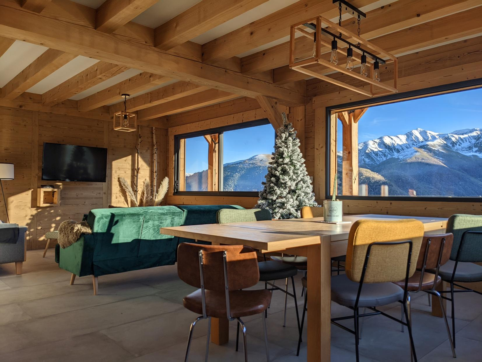 En entrant dans ce resplendissant chalet Pyrénéen, il vous faudra d’abord déchausser les skis et vous glisser dans vos chaussons offerts par la maison…Et profiter…De la vue, tout d’abord, depuis chaque pièce de la maison grâce à ses baies vitrées ; de la tranquillité, ensuite, puisqu’après vos journées sportives, vous pourrez vous détendre dans cette charmante demeure au bout d’une impasse, avec la forêt et les biches comme voisins ; enfin, Loïc, propriétaire et créateur de cette ambiance pyrénéenne, vous conseillera sur tout ce qu’il y a à voir et à faire lors de votre séjour. Lui, l’enfant du pays, est moniteur de ski à la station de Peyragudes, il vous attend pour un séjour rêvé !