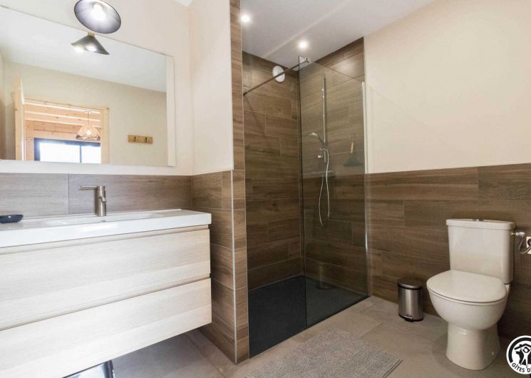 – Au premier étage : 3 chambres (1 lit double en 160*200)(2 lits simples en 90*200cm, jeux pour enfants)(1 lit double en 160*200cm, salle d’eau/WC), salle d’eau/WC.