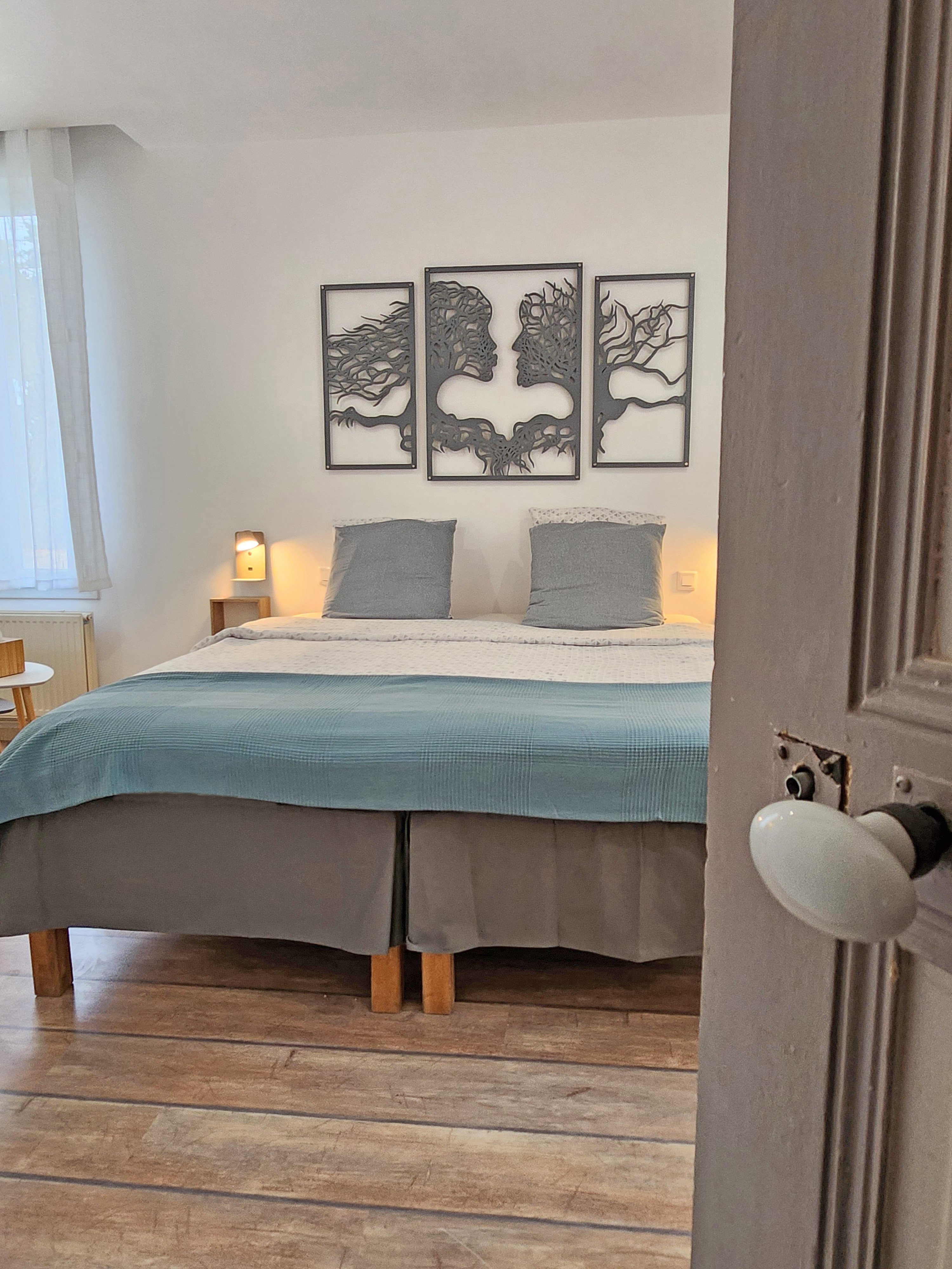 Plongez dans une atmosphère apaisante et raffinée en séjournant dans la Chambre Romarin, récemment rénovée. Elle dispose d’un lit double (180 cm), d’une salle d’eau privative avec WC, de la climatisation, du Wi-Fi gratuit et d’un plateau de courtoisie (thé, café). Au-delà de cette chambre confortable, vous pourrez profiter d’une cuisine extérieure partagée, d’une piscine chauffée, d’un terrain de pétanque, d’un jardin paysagé et d’une aire de jeux pour les enfants. Un véritable cocon de sérénité pour vous ressourcer et savourer chaque instant au cœur du Domaine à l’Aise.