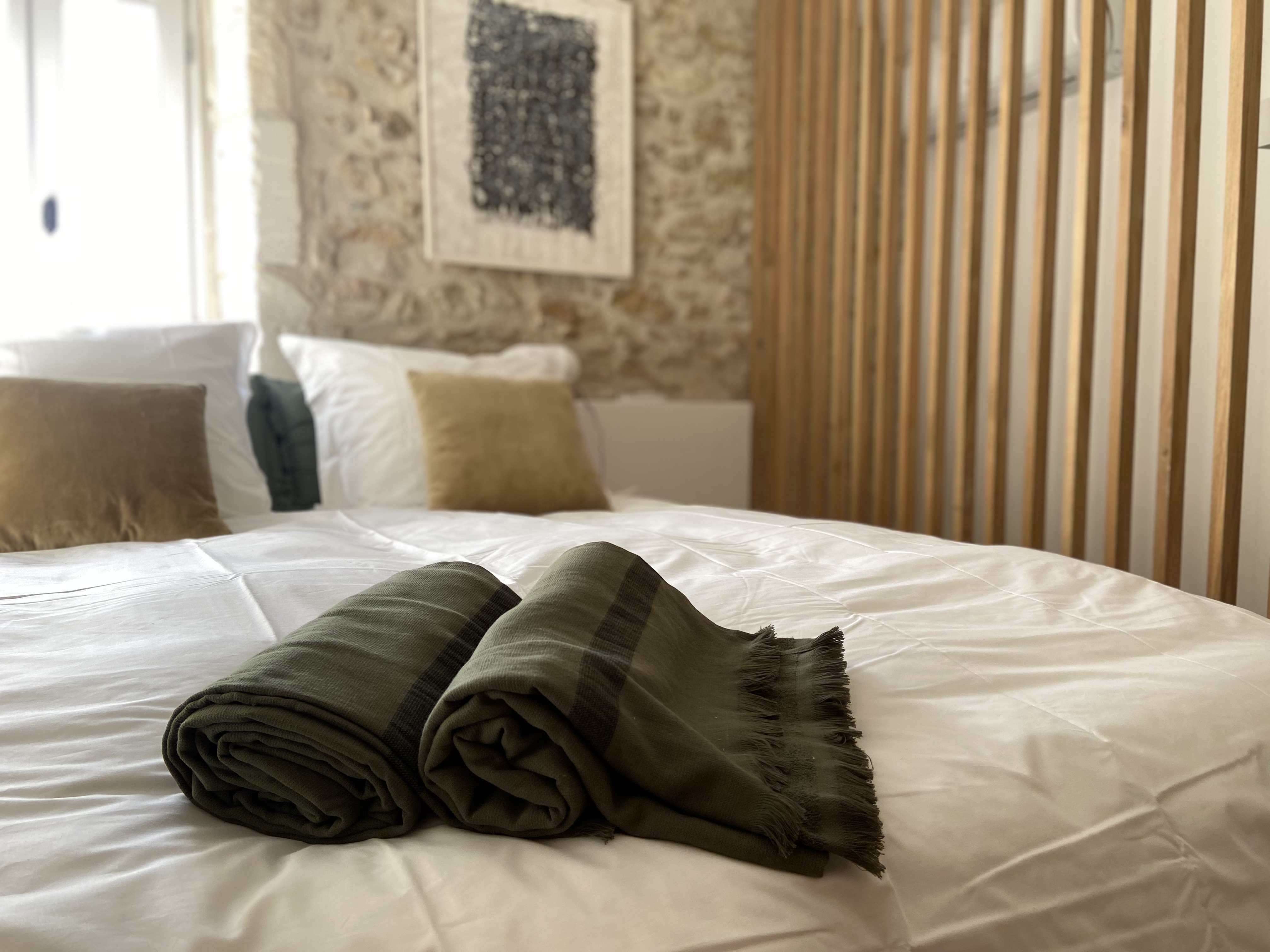 Une chambre d’hôtes disposant d’un espace nuit avec une salle de bain et toilettes indépendants aménagé dans un style chic et moderne. Une literie haut de gamme, un jeu de serviettes à disposition pour profiter de la piscine et passer un agréable moment sur les bains de soleil. Un espace salon indépendant au rez-de-chaussée avec machine Nespresso et bouilloire et de quoi déguster un verre de vin face au paysage splendide qui surplombe la vallée. Un espace extérieur indépendant exposé plein sud pour profiter des derniers rayons de soleil.