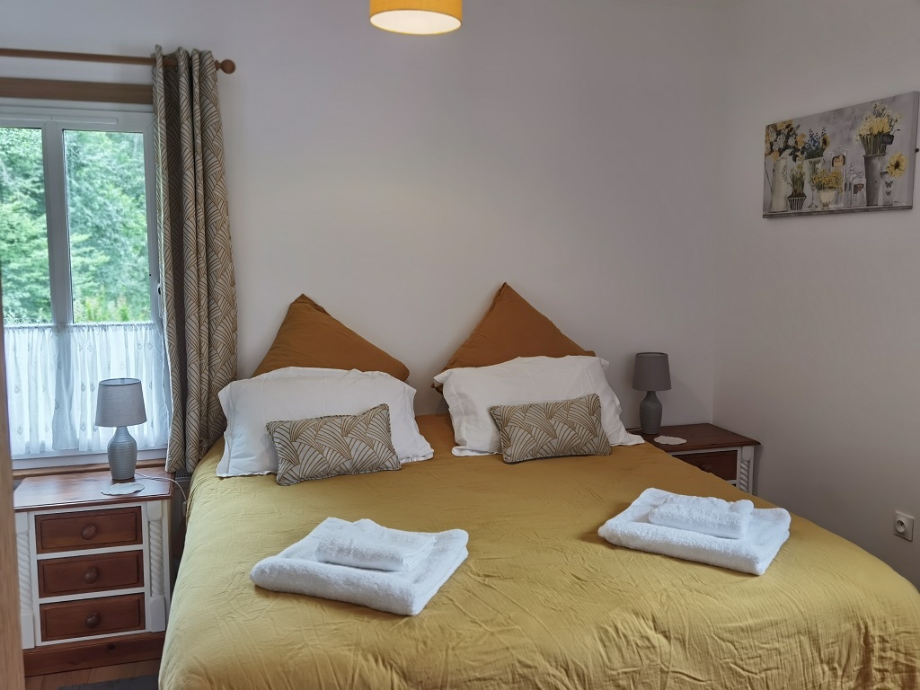 Dotés d’une salle de bain privative, les 3 chambres (au rez de chaussée : 1 chambre accessible avec 2 lits de 90 jumelables. À l’étage : 1 chambre avec 2 lits en 90 ainsi qu’1 chambre avec 1 lit double et 1 lit en 90 avec une séparation) . Possibilité de louer, sur demande, toutes les chambres de cette maison pour un séjour à 6 ou 7 personnes en famille ou entre amis avec ou sans petit déjeuner. Des pâtisseries fraîches, des fruits et des jus de fruits sont servies dans le petit-déjeuner continental. Dîner possible sur demande 48h avant votre arrivée (20€/pers) hors juillet/août. Vous pourrez vous détendre dans le salon avec cheminée. Des paniers-repas sont également disponibles l’été (7€/pers). Connexion Wi-Fi gratuite. Local à skis et vélos. .