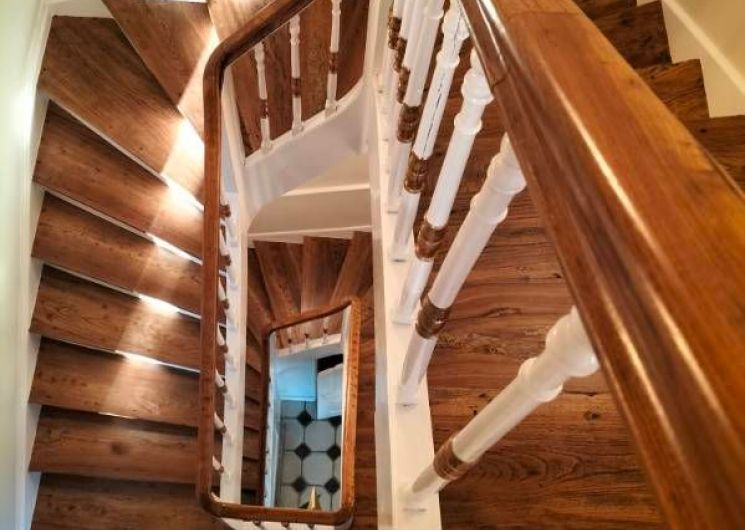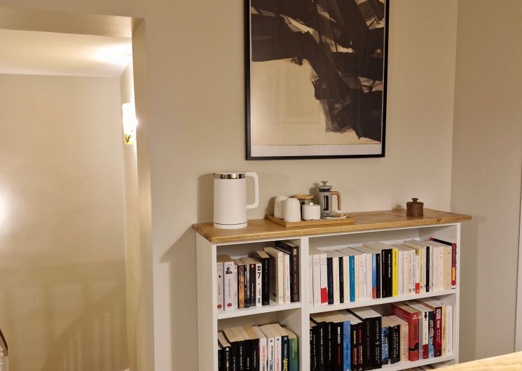 Une bibliothèque de romans à disposition sur le palier.