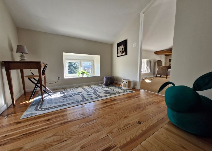– la chambre Cèdre (1 lit 140, armoire et bureau) avec salle d’eau privée et wc privatifs séparés.