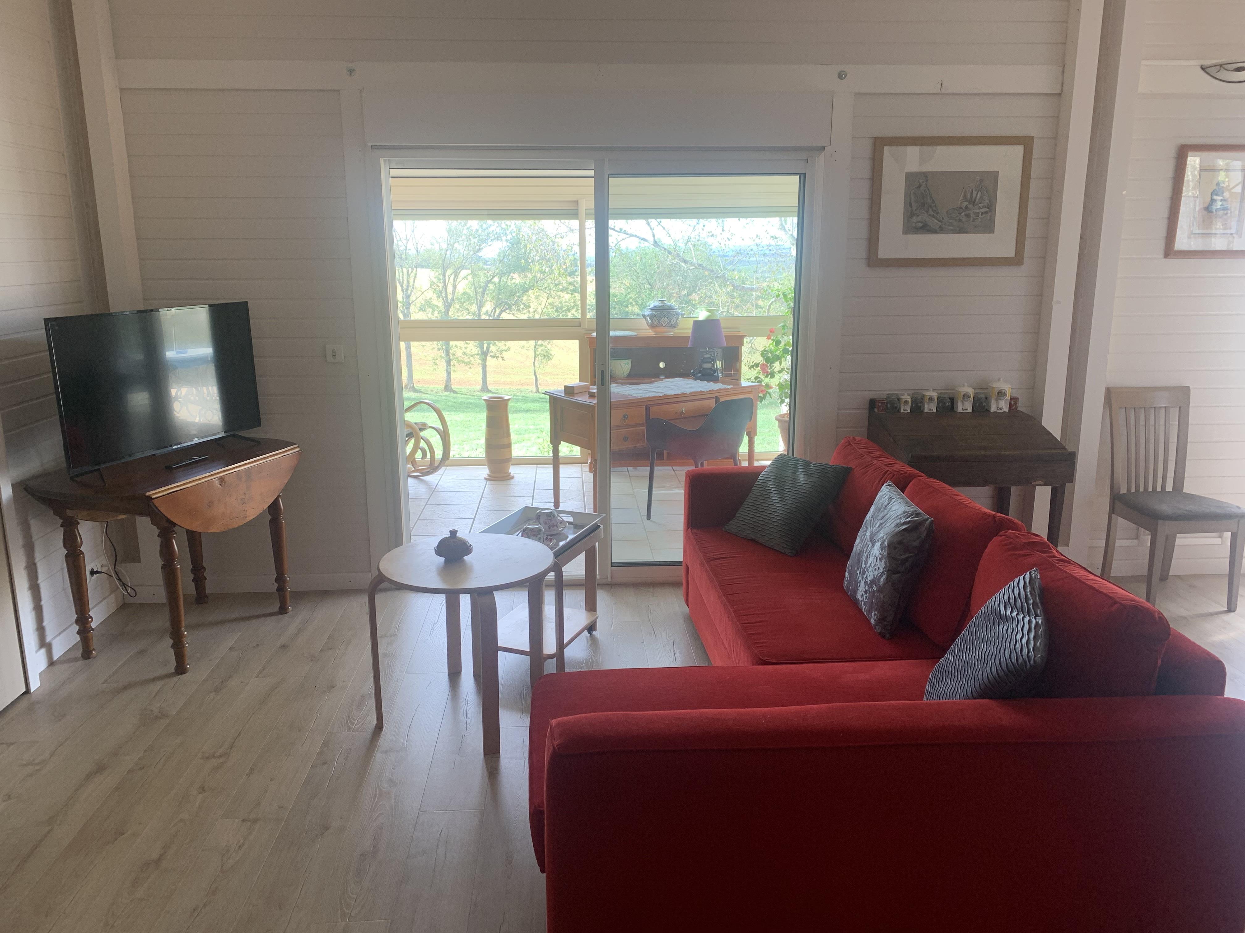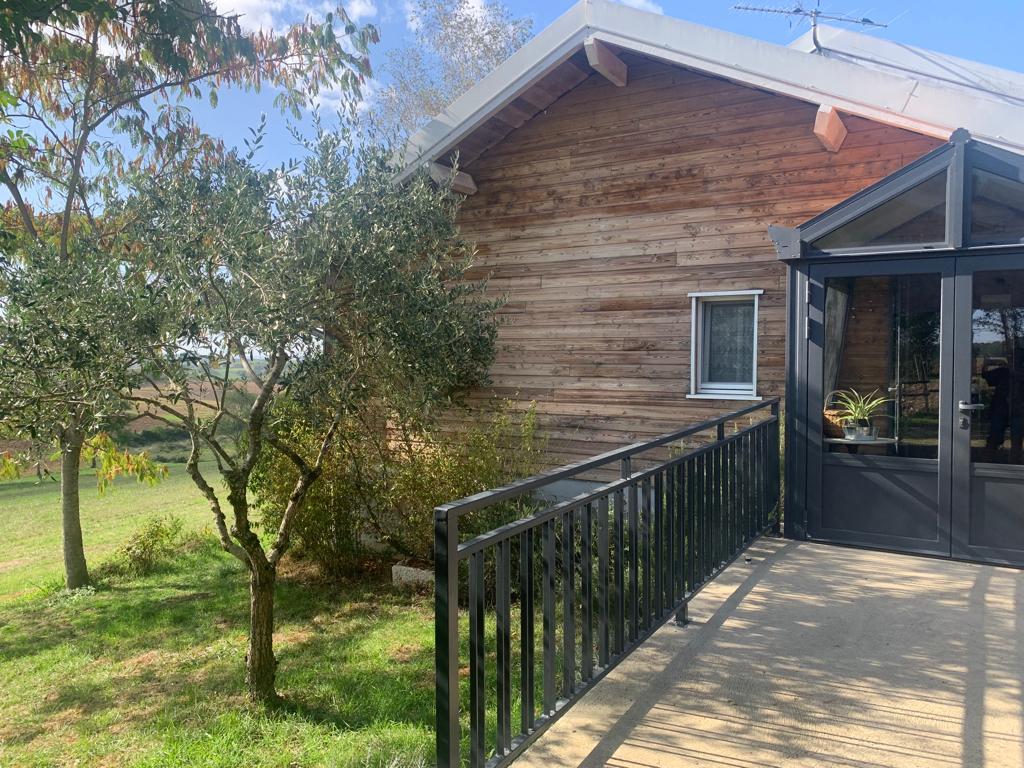 Sur les premiers contreforts de la montagne tarnaise, un joli gîte tout en bois, avec si le temps le permet une jolie vue sur les Pyrénées. Chalet bois de 100m² à proximité de la maison des propriétaires, indépendant, avec jardin, terrasse.