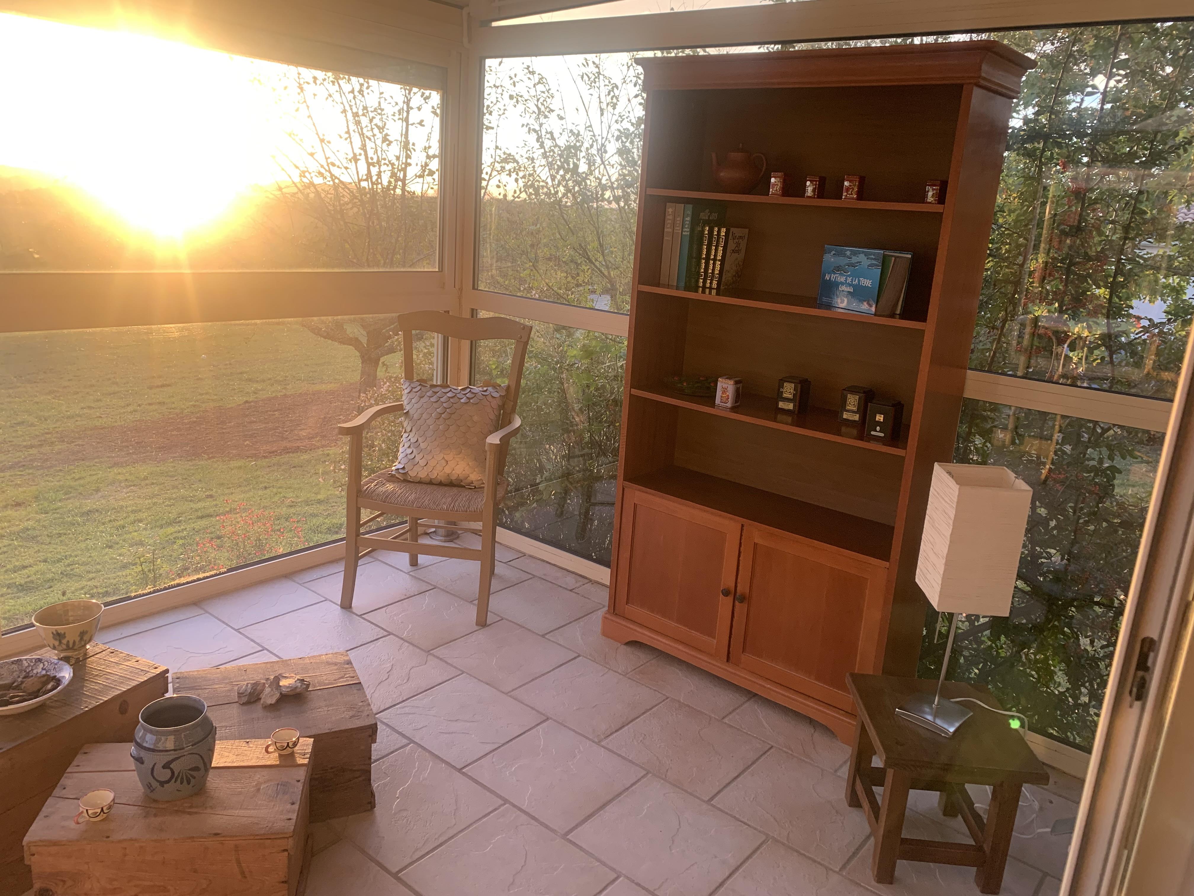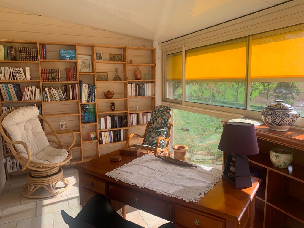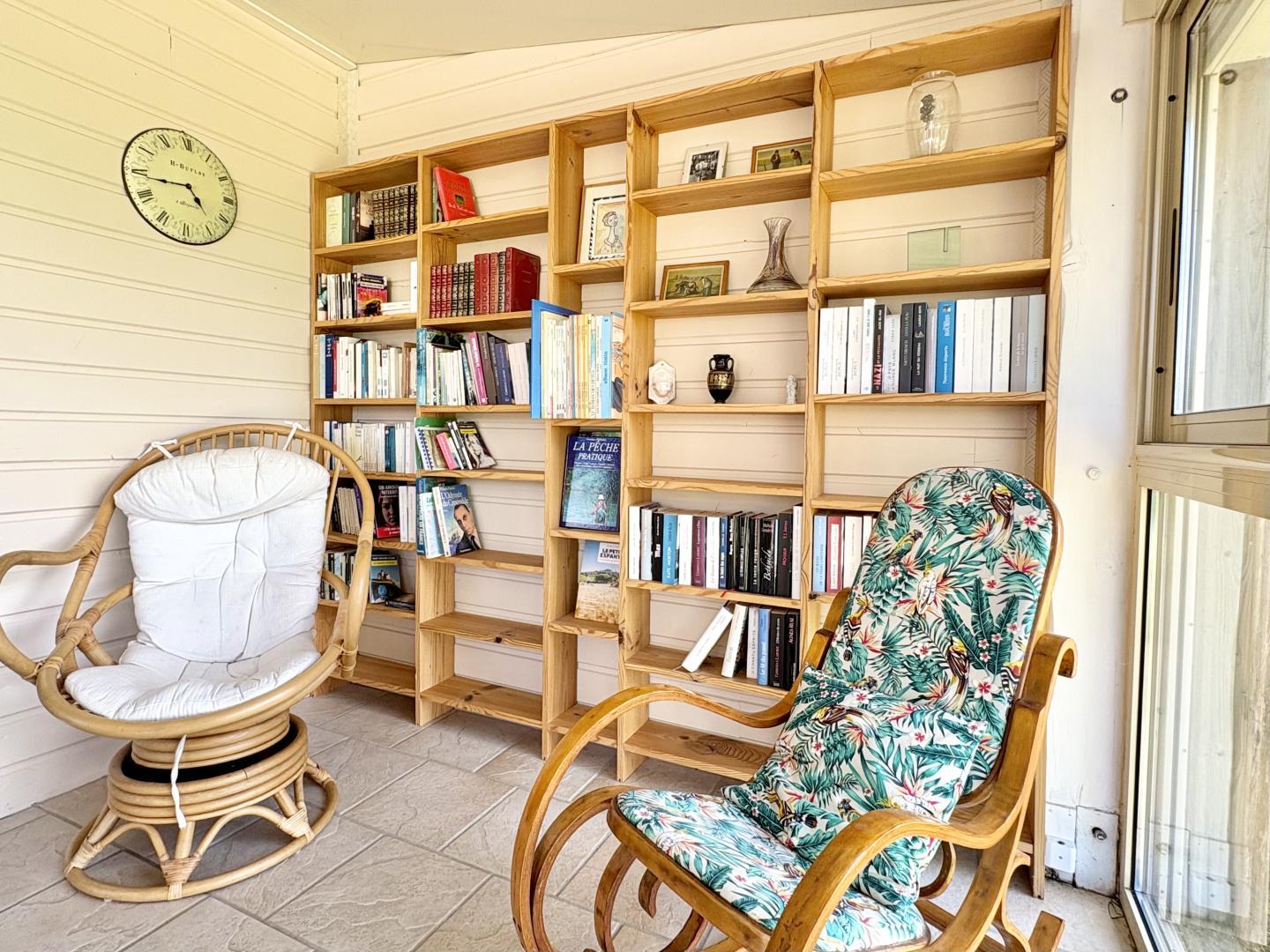 Mezzanine avec canapé bz, 2 vérandas avec bibliothèque, jeux de société.