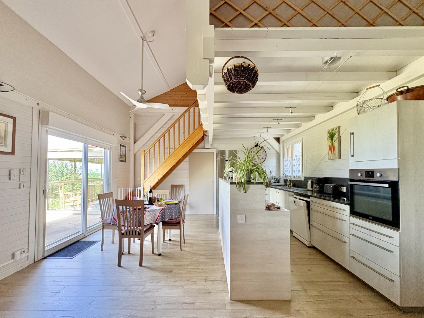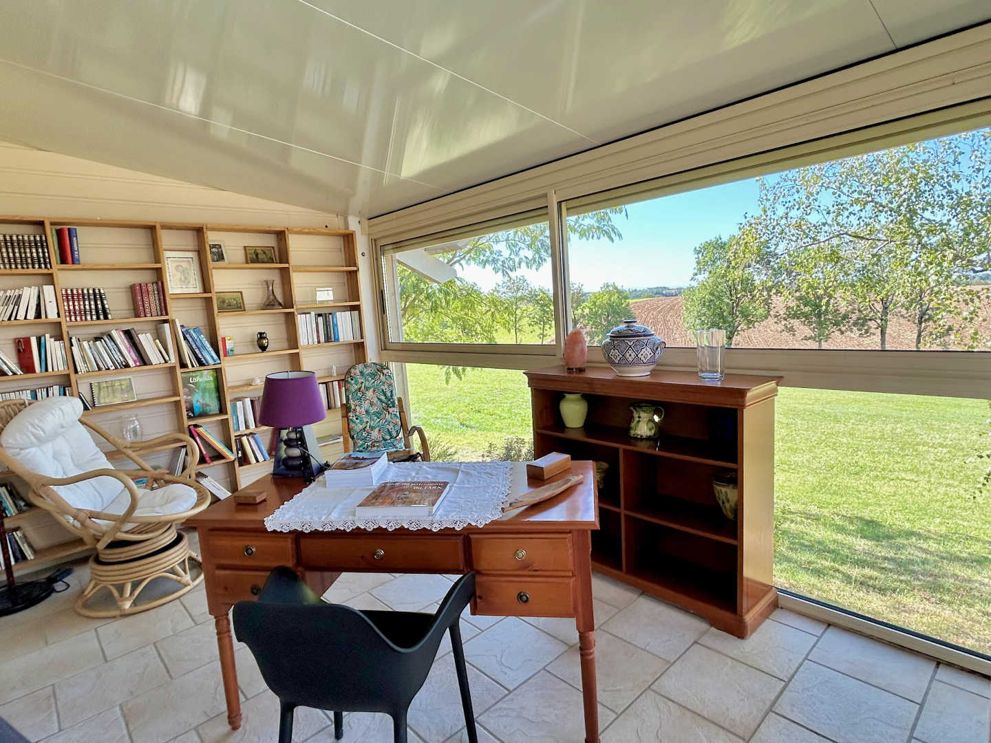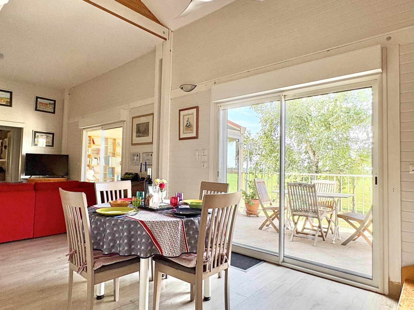 Mezzanine avec canapé bz, 2 vérandas avec bibliothèque, jeux de société.