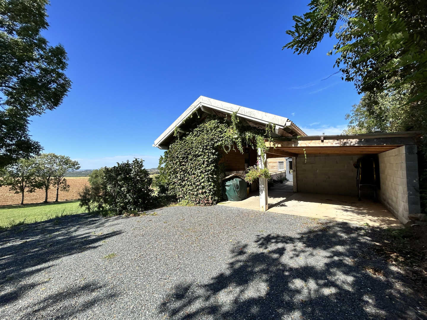 Parking ombragé, abri voiture, prise renforcée « Green up » pour recharge véhicule électrique.