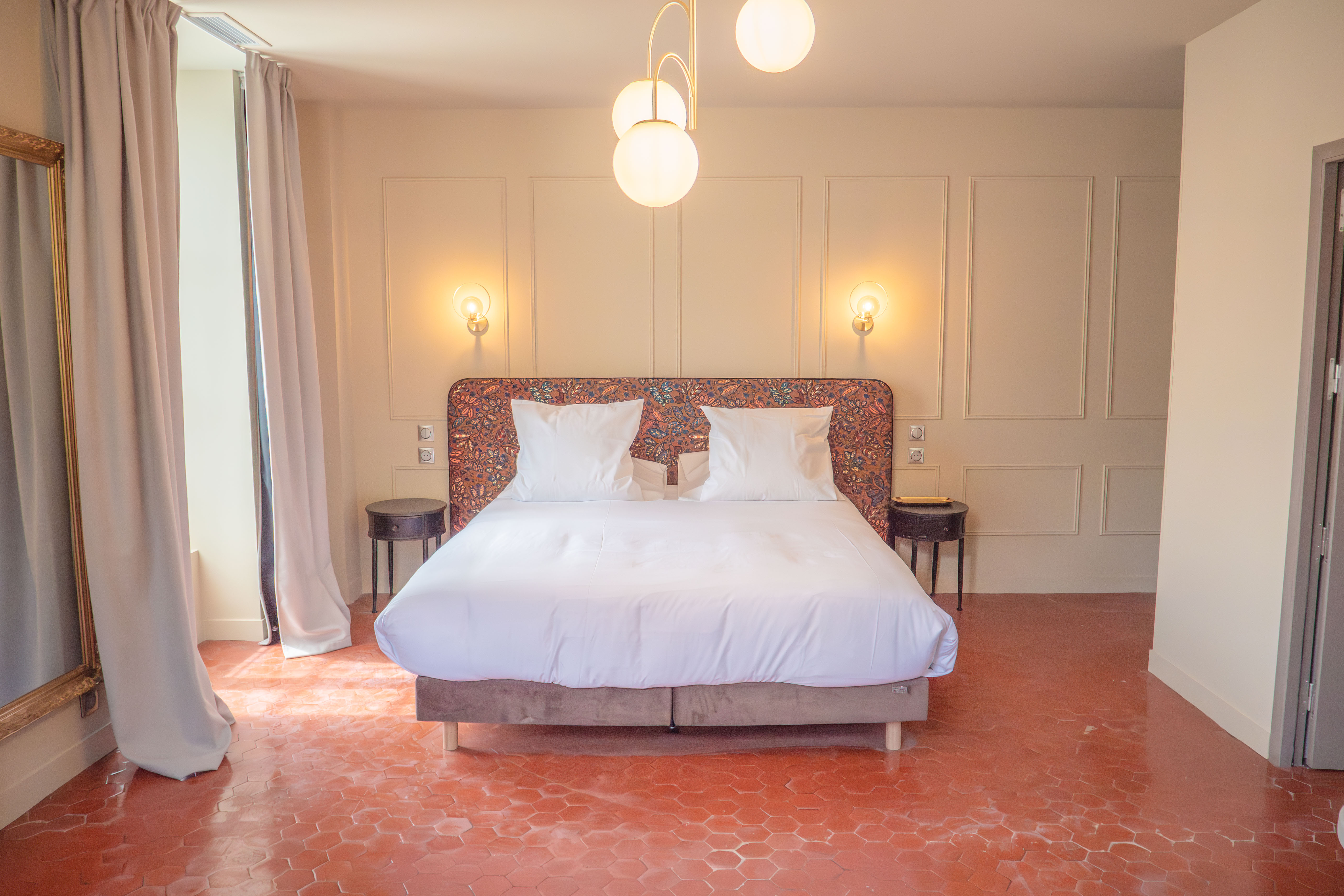 A l’étage, trois chambres avec salles de bains privatives sont à votre disposition. La première dispose d’une magnifique baignoire et d’une terrasse ensoleillée le matin, la seconde se caractérise par son plafond mouluré et sa majestueuse porte fenêtre dont la vue donne sur la cour du château et la troisième avec ses trois fenêtres bénéficie d’une vue directe sur la forêt méditerranéenne et sur la cour. Vous bénéficiez également d’un accès privilégié sur la cour du château et d’un spa privatif pour vivre au rythme du chant des cigales. Avec sa décoration originale, chaque pièce de la maison est une surprise.