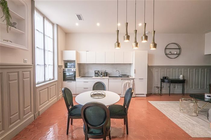 Pour 1 à 2 personnes, 1 chambre, maison de 79 m² avec une cheminée pour vos soirées d’hiver, grand balcon, 1er étage.