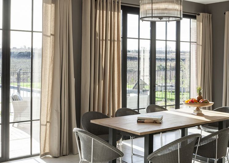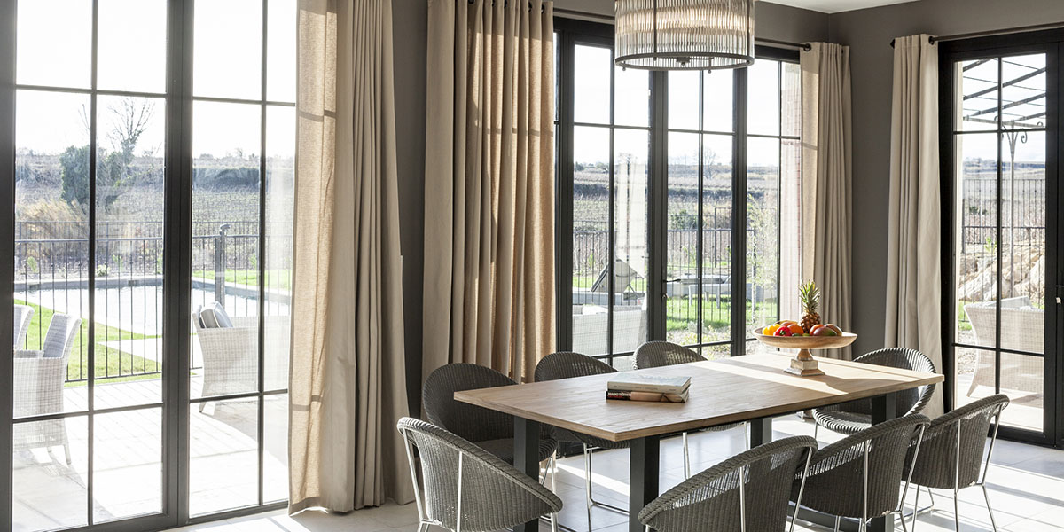 Grandes villas aménagées de trois chambres suites dont une en rez-de-chaussée selon la propriété – une avec baignoire et deux avec douche. Depuis la cuisine/salon/salle à manger au rez-de-chaussée une porte-fenêtre mène à la terrasse avec une aire de repas avec un barbecue et à un grand jardin, avec des chaises longues et une piscine avec clôture de sécurité. Les villas disposent d’une superficie de 145m².