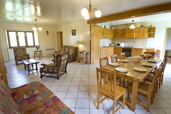 Ancienne ferme indépendante dans un village calme avec vue agréable. Maison faite de pierres apparentes (superficie 120 m²). Au rez-de-chaussée : cuisine, salle de séjour, coin salon. 2 chambres (2 lits 2 places), 1 chambre (2 lits 1 place, 1 lit enfant), salle de bains, WC, cheminée avec insert « bois fourni ». Lave-linge, lave-vaisselle, congélateur, TV, chauffage électrique, cour fermée, pré, garage, salon de jardin, téléphone. Barbecue, micro-ondes, grille-pain, parking pour plusieurs véhicules. Possibilité d’un parc clos pour 2 chevaux, si le locataire le souhaite (40€ la semaine).