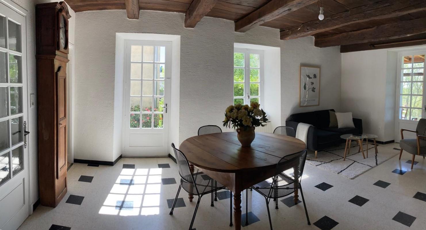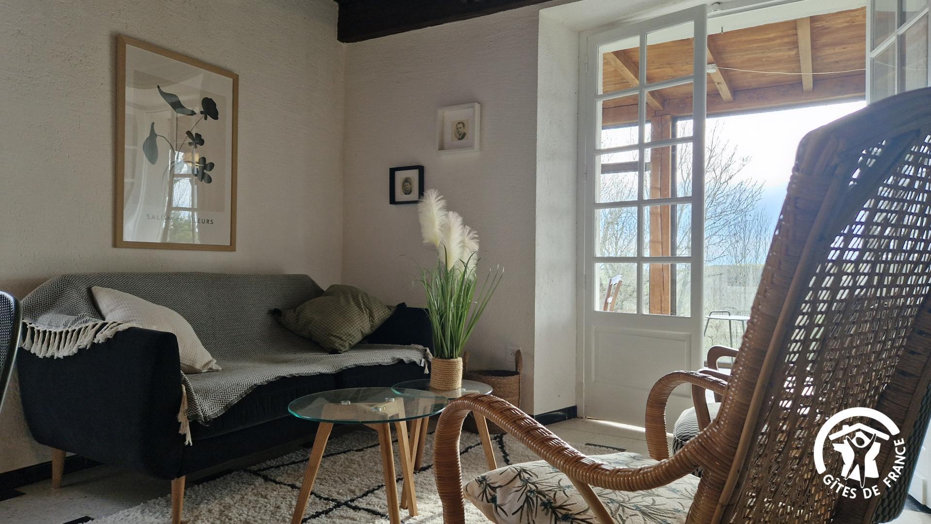 – séjour avec table à manger et salon. TV non reliée à la TNT, lecteur DVD ( films à disposition), la 4G fonctionne bien dans le village,