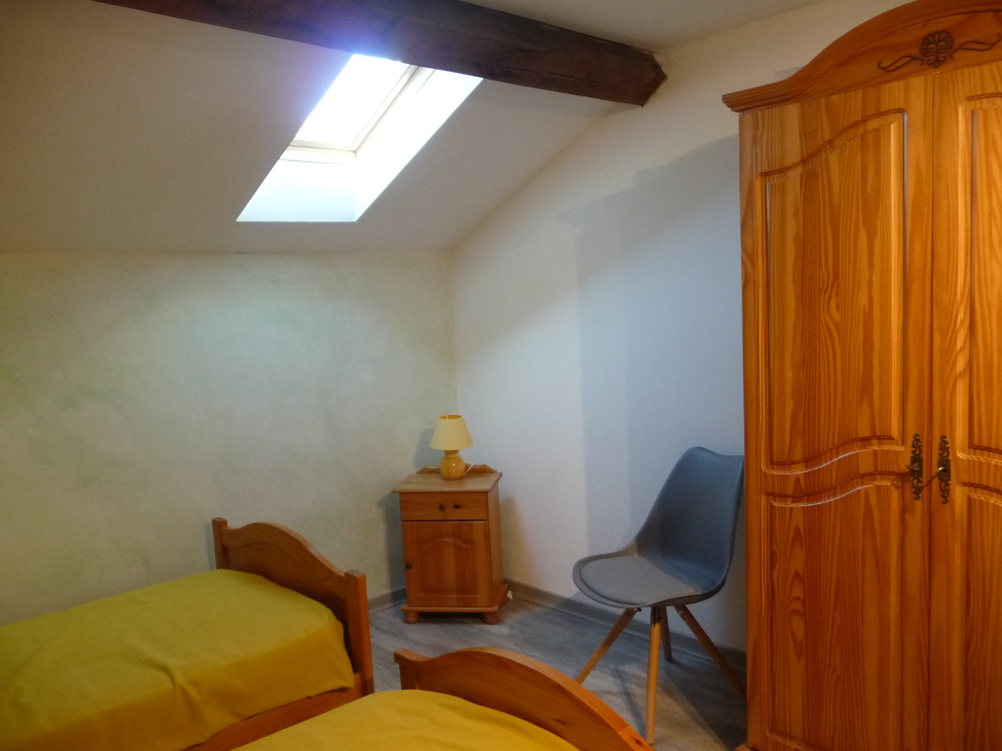 Maison à l’entrée du village, sans vis à vis avec très belle vue. Grande pièce à vivre avec coin cuisine entièrement équipé, coin repas et espace salon (tv et lecteur dvd). WC et petit espace buanderie. A l’étage 1 chambre avec 1 lit 2 places et 1 chambre avec 2 lits 1 place. Salle d’eau avec wc. Bel espace extérieur clos avec salon de jardin et barbecue.