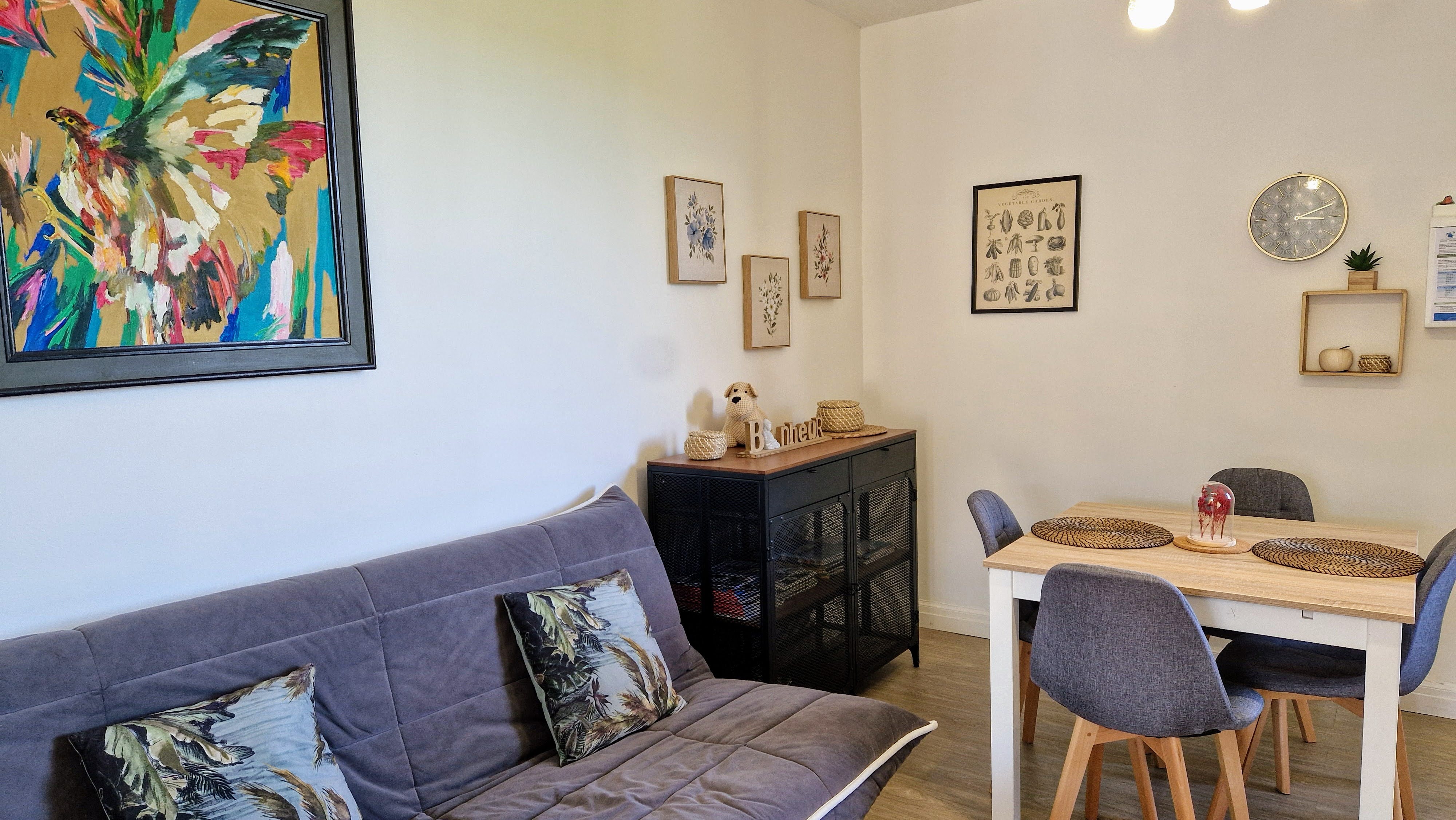 Appartement 2 à 4 personnes, rénové en juin 2023, au 2ème étage d’un petit immeuble. Cuisine équipée (cafetière, micro-ondes, bouilloire, grille-pain, lave-vaisselle, mixer, batteur, robot cuisine, appareil à raclette, …). Chambre avec dressing, lit double en 140, salon avec canapé-lit, table à manger, TV, WIFI … Salle de bains avec douche, rangements, lave linge et WC. Les serviettes et le linge de lit sont fournis. Lits faits à votre arrivée. Commerces à proximité : Thermes, Casino, halles (marché couvert), restaurants… Places parking gratuites autour du logement. Wifi gratuit à votre disposition durant votre séjour (Box 5G).
