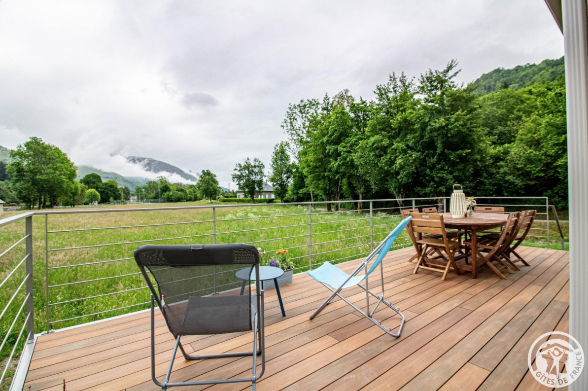Situé à quelques minutes de la station thermale d’Argelès Gazost, le Val d’Azun est une des portes d’entrée du Parc national des Pyrénées. Cette vallée est un parfait mélange de traditions, de culture et de nature où vous aurez plaisir à profiter des bienfaits montagnards au gîte « Chez Fanou ». Son intérieur séduit par ses volumes, sa luminosité et la modernité des lieux. Véritable logement de vacances pour familles et amis, les mots qui le résument sont fonctionnalité et convivialité. A environ 300m se trouve une base de loisirs : pumptrack, aire de jeux pour enfants avec tyrolienne, terrain de tennis, mur d’escalade, terrain multisports, terrains de pétanque, slackline et street workout. La station de ski de Couraduque- Val d’Azun est accessible en 15 minutes. .