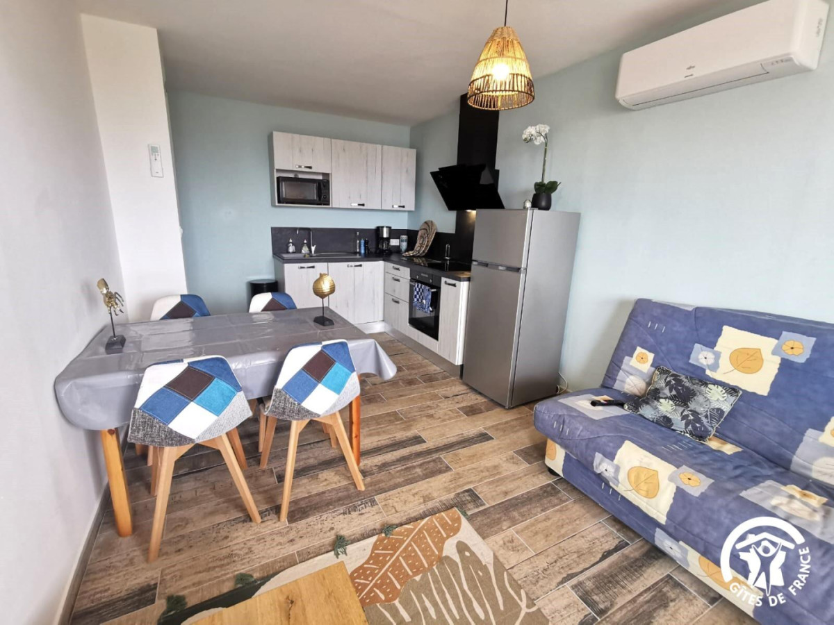 Vous retrouverez dans la cuisine four, micro-ondes, réfrigérateur avec compartiment congélateur, lave-vaisselle, cafetière et le nécessaire de cuisine pour passer un séjour confortable dans ce cocon pour deux. Le gîte possède également une belle chambre pour deux personnes, elle-aussi avec une ouverture sur le balcon, avec un lit 140×190 cm, tables avec lampes de chevet et un placard/dressing pour y ranger vos affaires. Vous pourrez aussi profiter d’une salle d’eau moderne avec douche, machine à laver et vasque avec miroir, ainsi que d’un WC indépendant de la salle d’eau. Le balcon de l’appartement (qui possède par ailleurs une place de parking privative) avec sa table et ses chaises pour prendre le petit-déjeuner vous donnera une vue imprenable sur la plage et la mer, un lieu idéal pour profiter en toute sérénité du soleil de l’Hérault ! A noter que le gîte est situé dans une résidence, au-dessus de plusieurs restaurants. Attractions touristiques : A seulement quelques mètres du gîte, profitez de l’air frais de l’Hérault et offrez-vous des journées ensoleillées sur la jolie plage de sable fin du Môle ! Entre farniente et activités nautiques, l’endroit est idéal pour des moments de détente à deux. Vous pourrez également en profiter pour faire une partie de pétanque sur les terrains bordant la plage. Dans la superbe ville d’Agde, admirez l’architecture gothique de la cathédrale Saint-Étienne, véritable emblème de la ville datant du XIIIe siècle. Cette cathédrale impose sa majesté au cœur de la vieille ville et offre une vue panoramique exceptionnelle sur la région. Explorez la vieille ville pour ne pas rater la Tour de l’Horloge, qui offre elle-aussi une vue sans pareil sur Agde et ses environs. Si vous êtes férus de découverte et d’aventure, plongez dans l’histoire maritime de la région au Musée de l’Éphèbe, qui abrite des vestiges archéologiques subaquatiques et met en lumière le riche passé méditerranéen d’Agde. Le Musée Agathois Jules Baudou est un aut