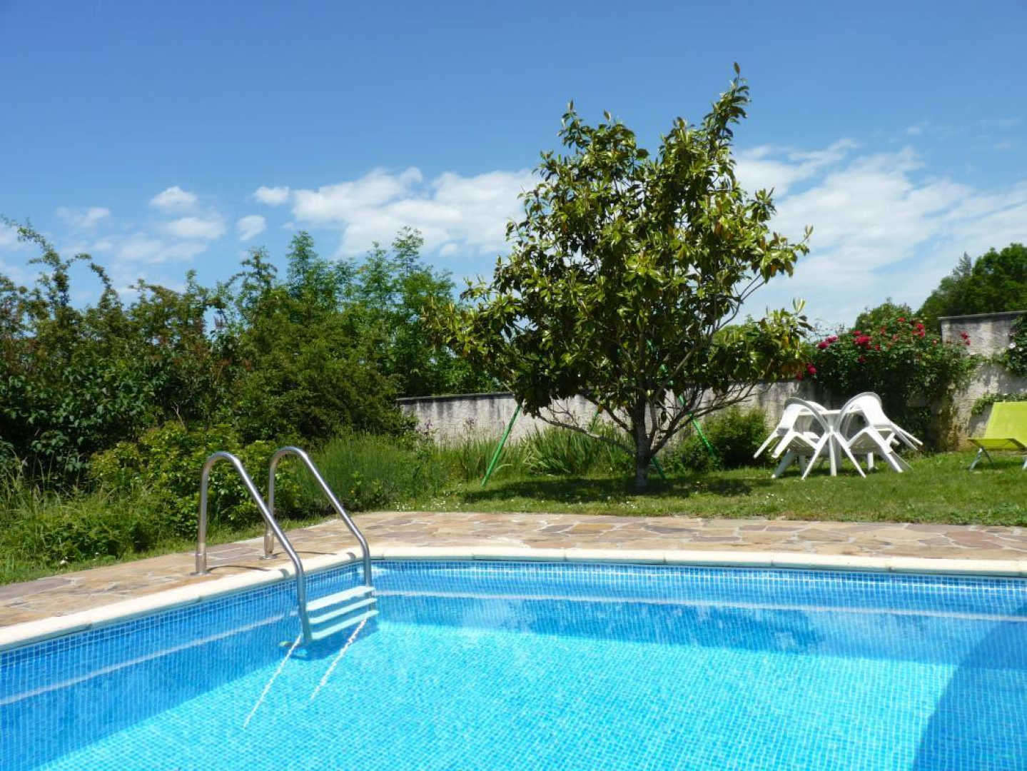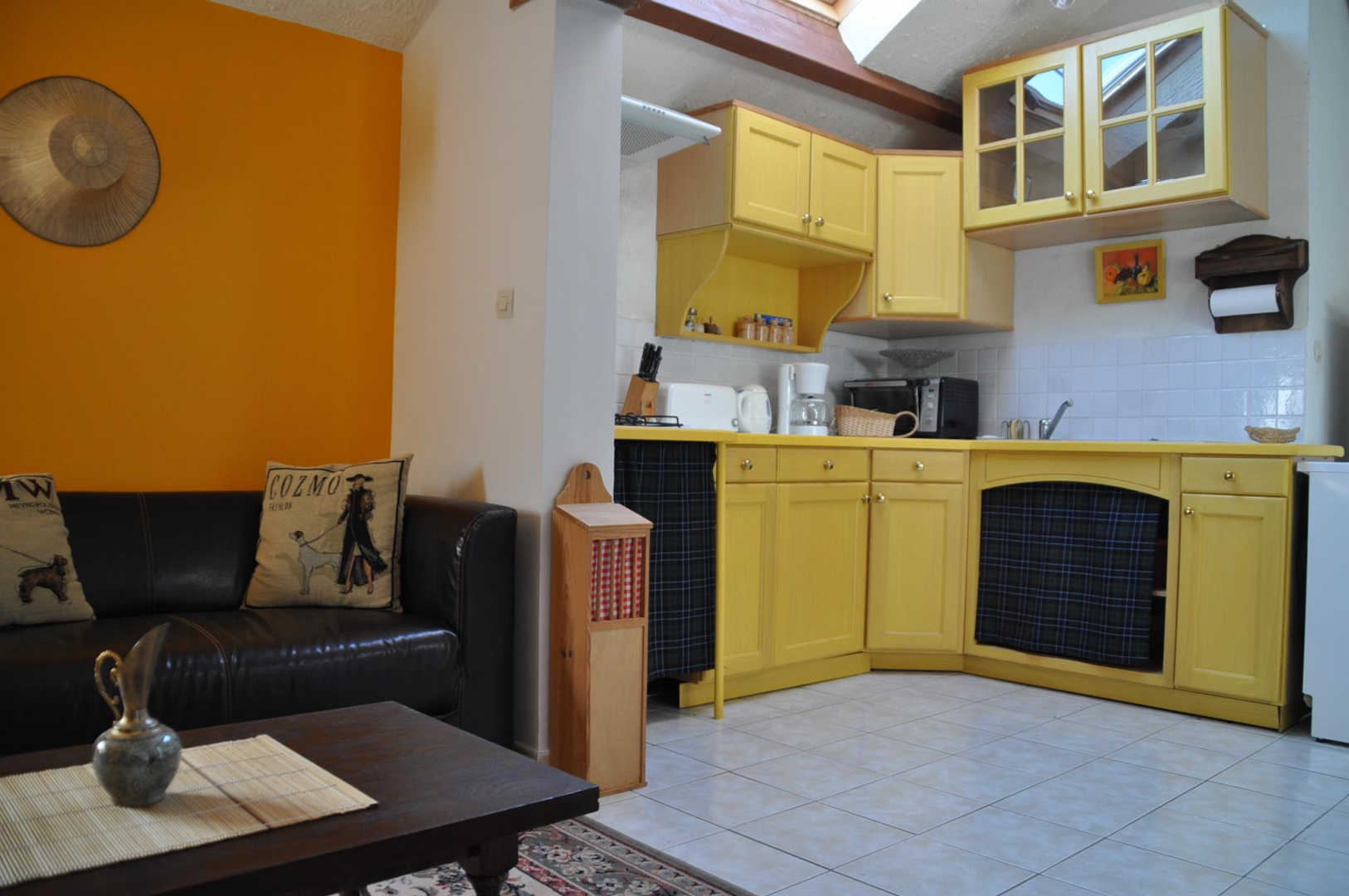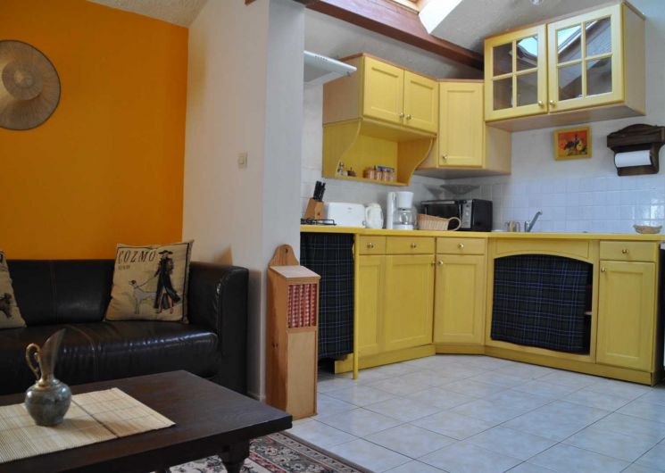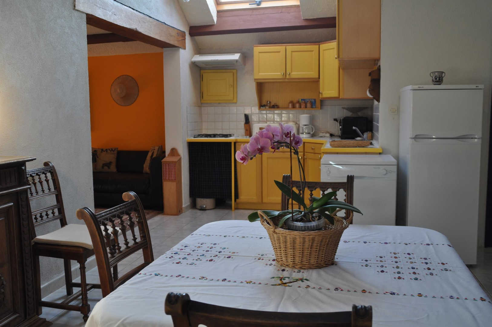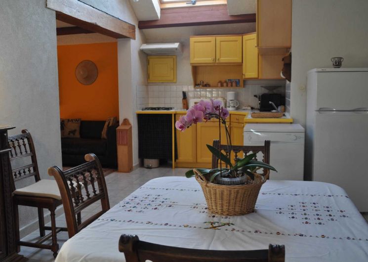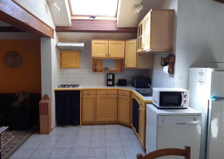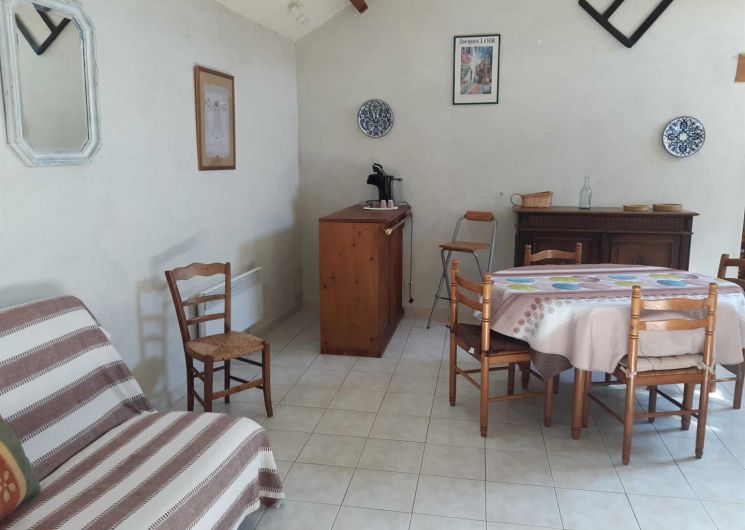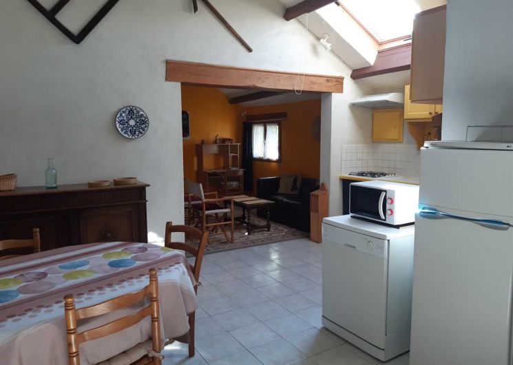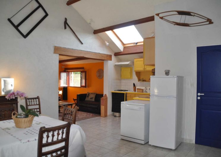 Gîte indépendant et de plain pied situé dans un petit hameau agricole, avec petite terrasse. Grande pièce à vivre avec cuisine ouverte, coin salon (tv, dvd), deux chambres (un lit double et deux lits simples superposés), salle d’eau, wc. Climatisation, cheminée. Piscine à partager avec le propriétaire et ses hôtes, ouverte de juin à septembre si la météo le permet.