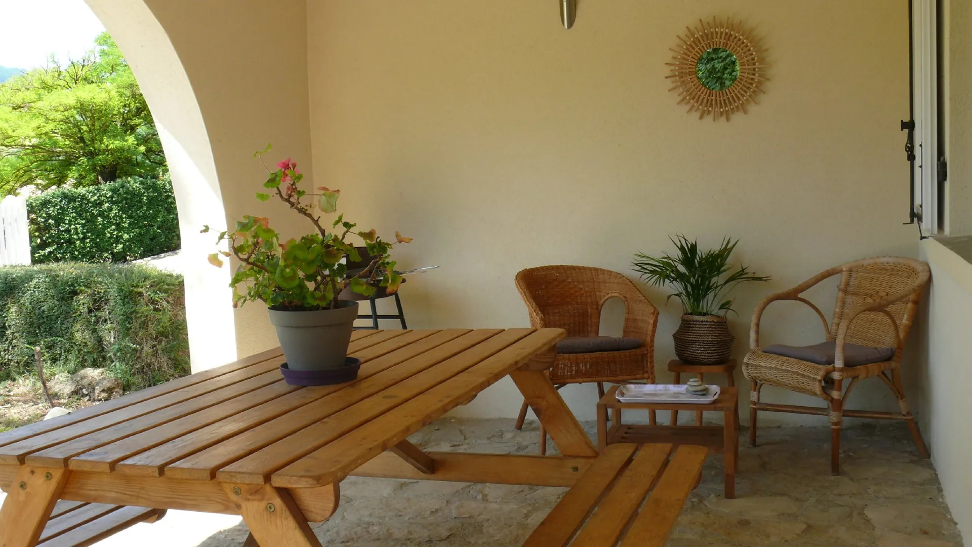 Terrasse abritée au Gîte Chez Marie – © Chez Marie -Location de vacances Compeyre, Millau, gorges du Tarn AYGG67