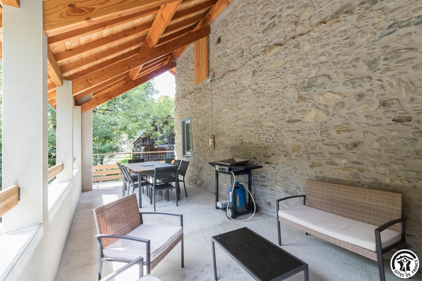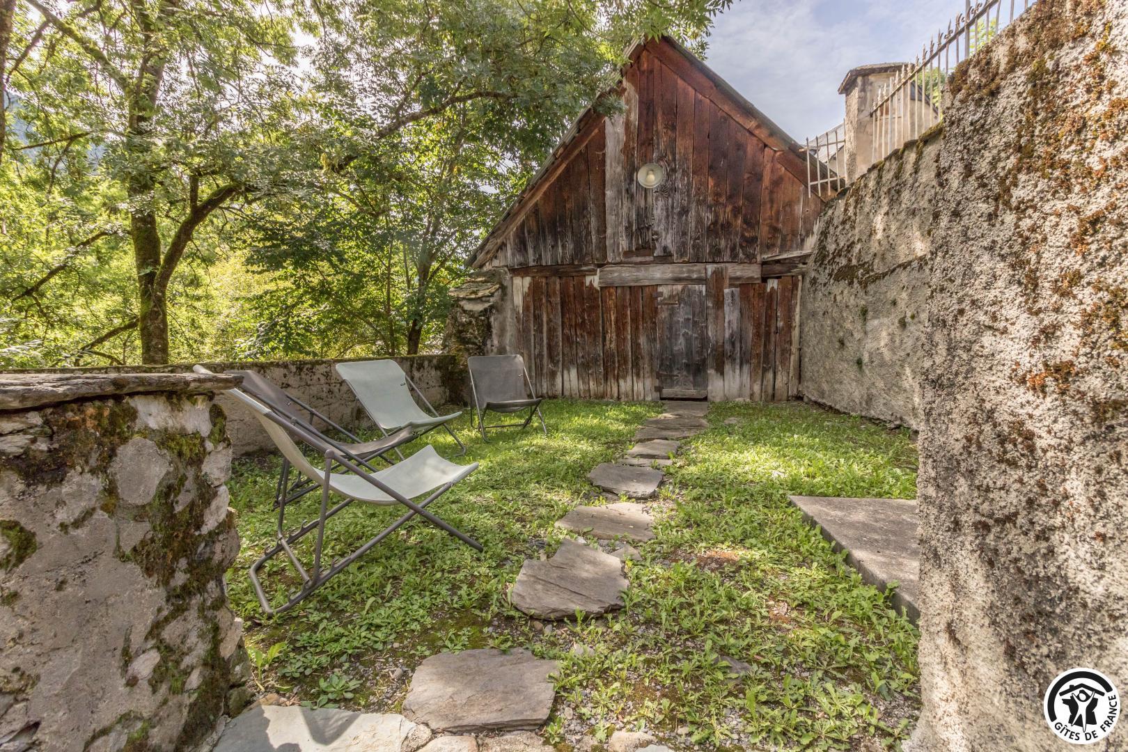 Jardin avec salon de jardin, barbecue, plancha et transats. Terrasse à l’arrière du gîte avec salon de jardin et transats. Stationnement public devant le gîte. Possibilité de ranger vos vélos dans la petite grange. Prêt de 2 raquettes.
