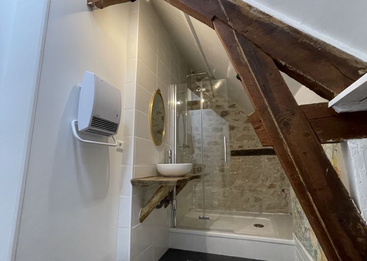 Un joli gîte pour 4 personnes avec toutes commodités et confort. un beau séjour avec poêle à bois et une cuisine au rez-de-chaussée. A l’étage 2 chambres et une salle d’eau avec douche à l’italienne et WC. Derrière le gîte se trouve une terrasse privée avec un barbecue en pierre.