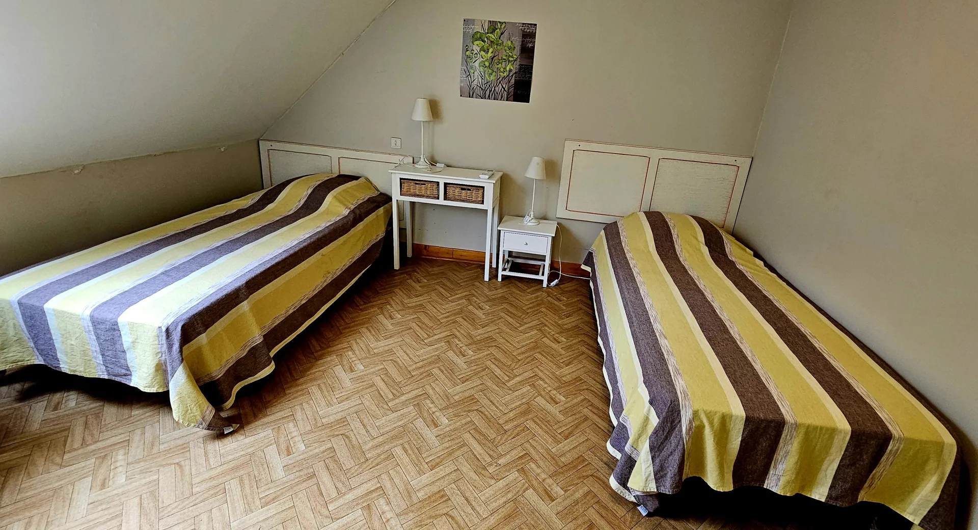 – 1 chambre, avec lits jumeaux, bureau, armoire de rangement et clim.