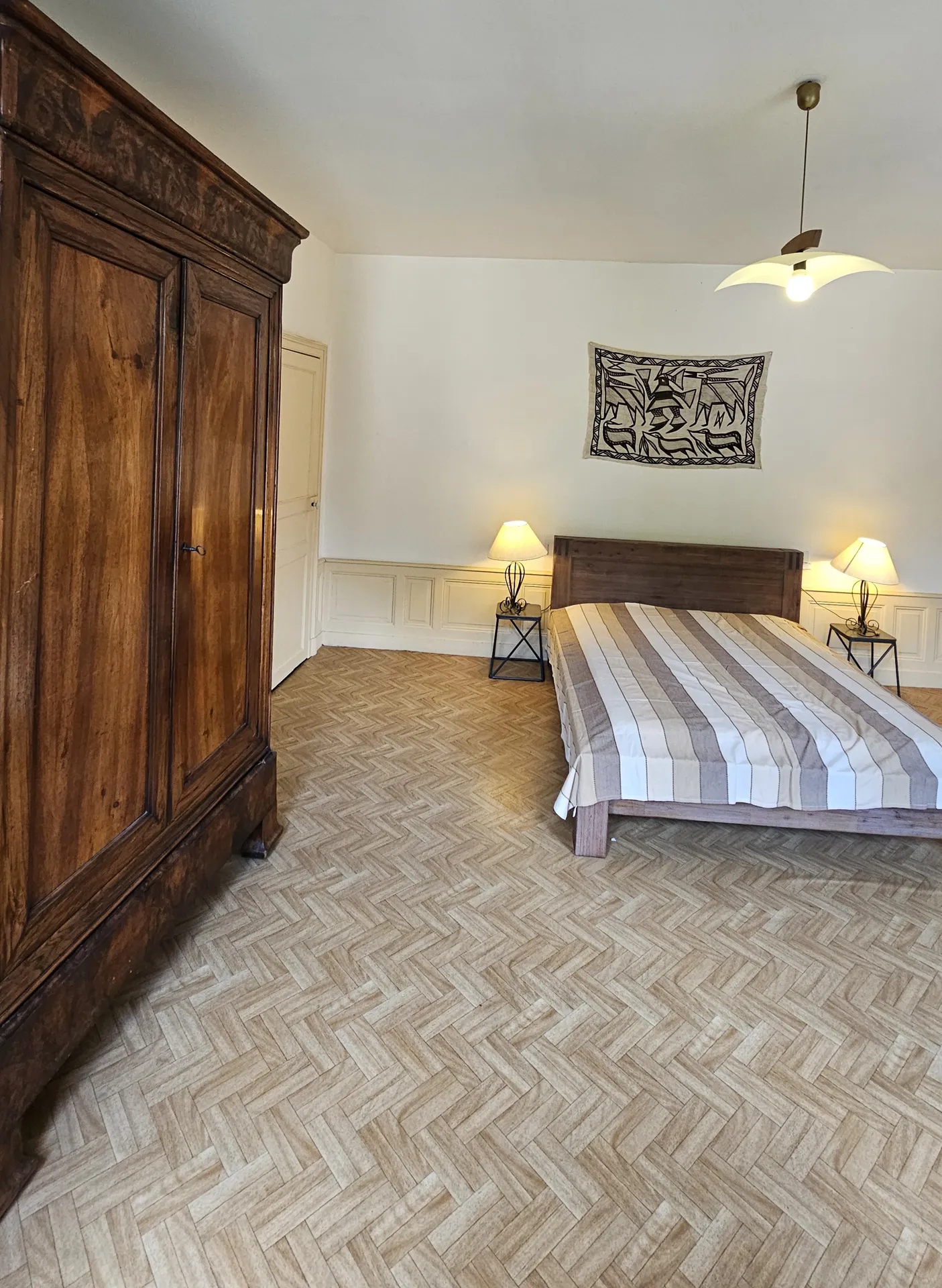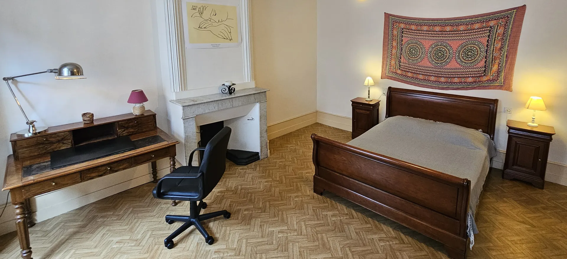 – 2 belles chambres spacieuses avec grands lits, bureau & armoire de rangement.