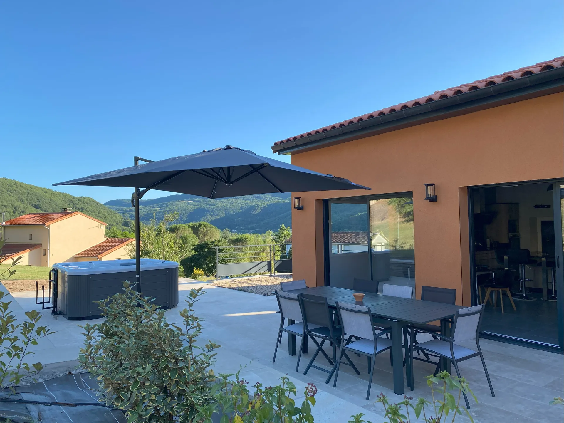 Située au sud-est de l’Aveyron, cette maison contemporaine vous enchantera de par son intérieur chaleureux, sa terrasse et son spa privés qui vous offre une très belle vue sur la vallée.