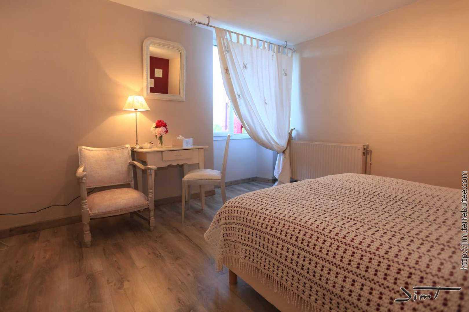 A l’étage, la maision dispose de deux accès : par un escalier en pierre donnant sur le séjour, ou par le jardin et la cuisine d’été.