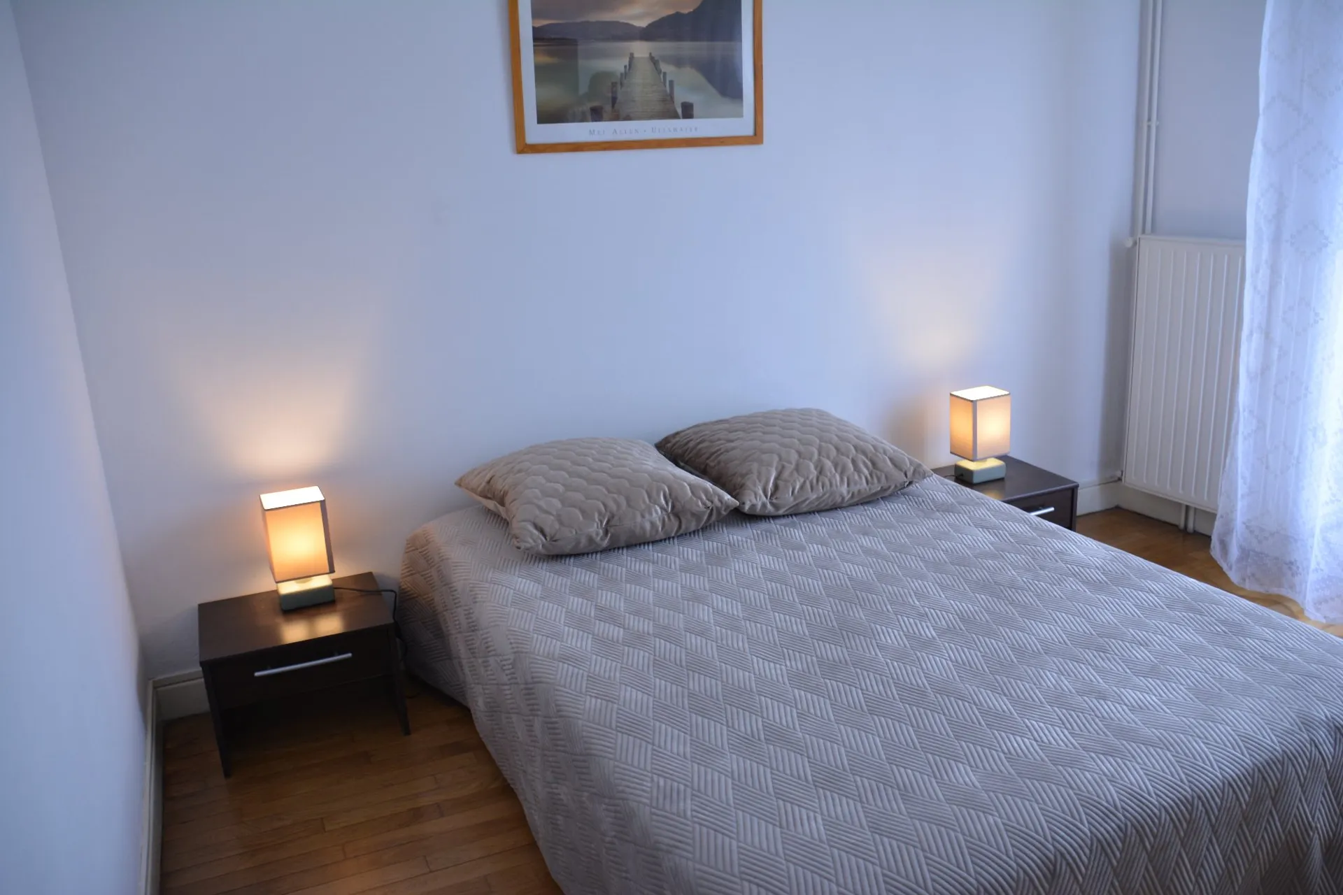 Appartement climatisé 45m² avec connexion WIFI au 1er étage avec parking sur le terrain , une entrée avec placard, une cuisine équipée, un salon séjour avec clic clac, une salle d’eau avec cabine de douche, un wc séparé, une chambre avec lit 140 donnant sur balcon. Location de linge à la demande.