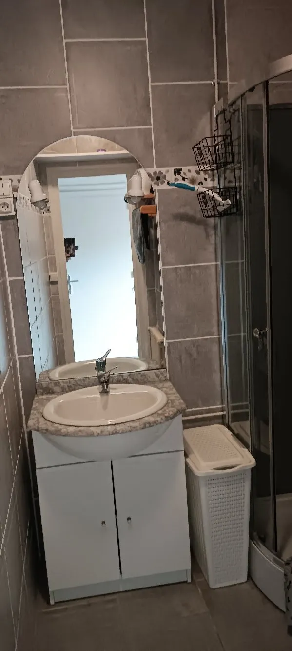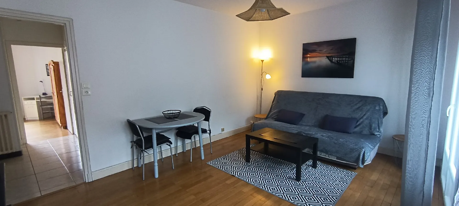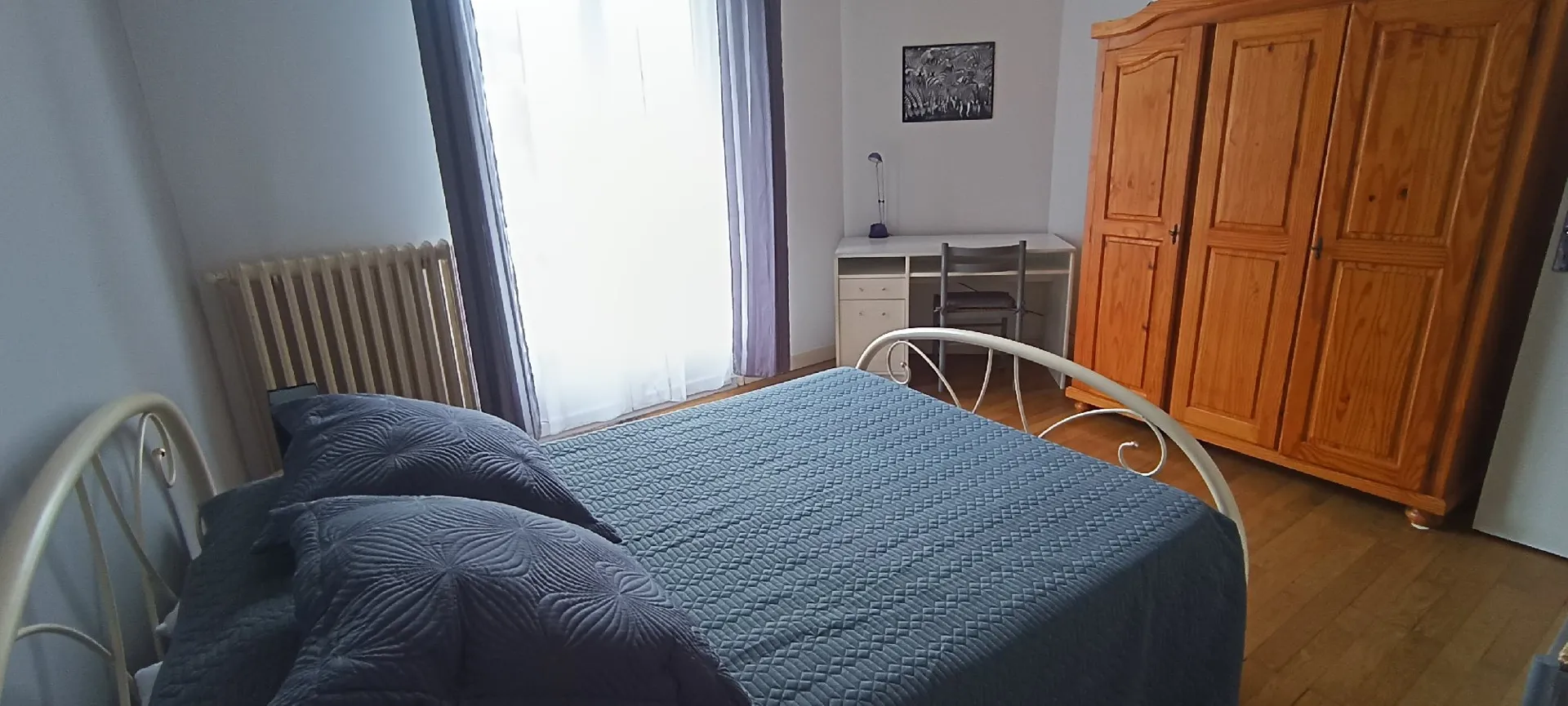 Appartement climatisé de 45 m² avec connexion WIFI au 2ème étage avec parking sur le terrain, une entrée avec placard, une cuisine équipée, un salon séjour avec clic clac, une salle d’eau avec cabine de douche, un wc séparé, une chambre avec lit 140 donnant sur balcon. Location de linge à la demande.