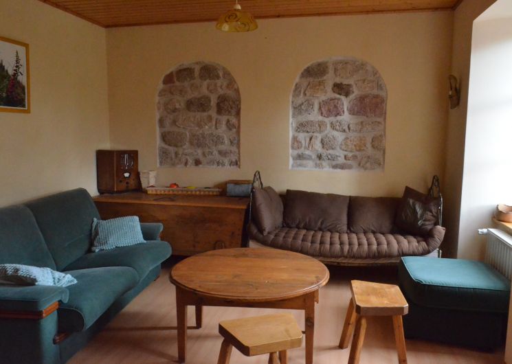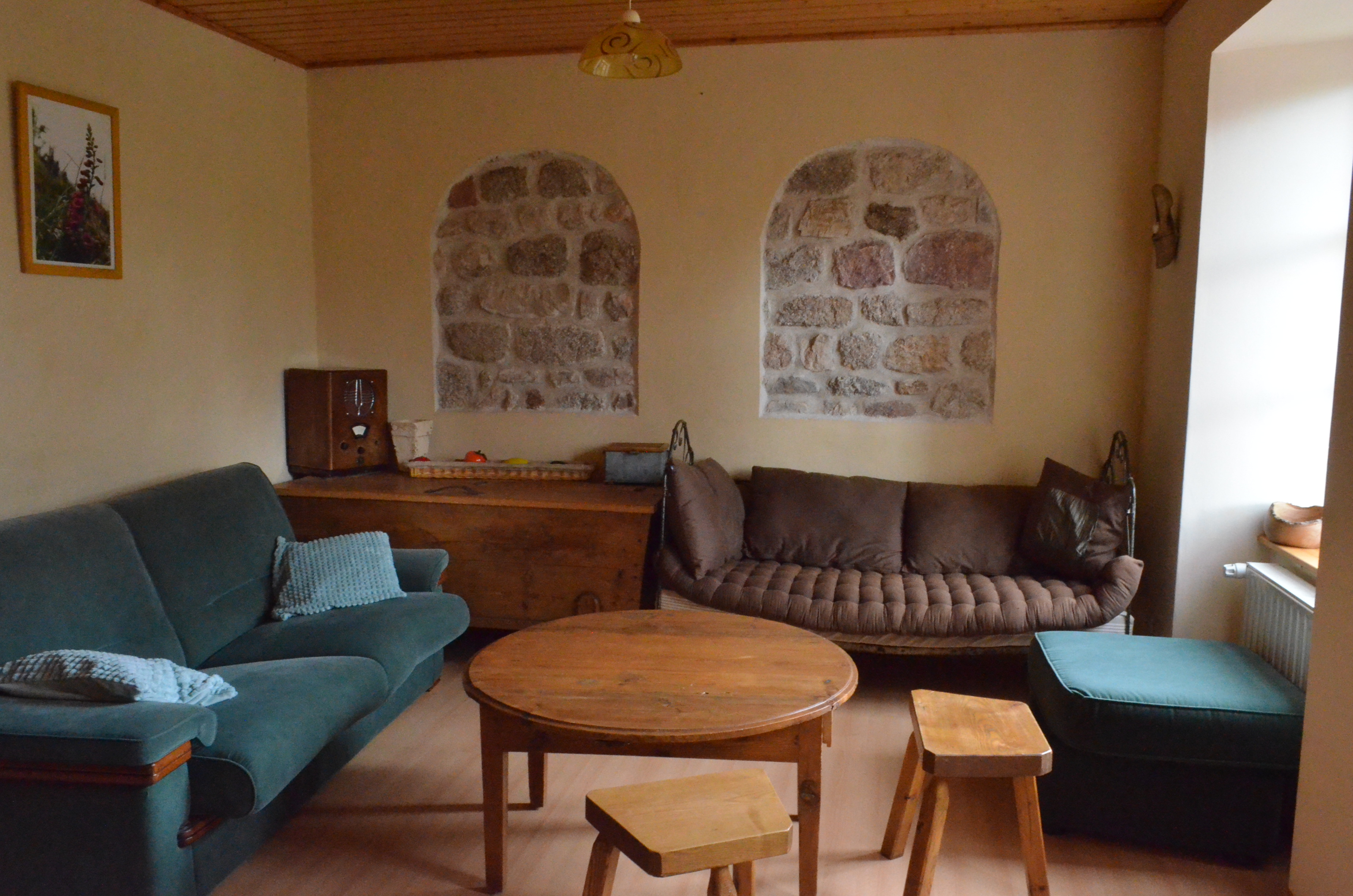 Entre le Malzieu et Saint-Alban, dans un hameau comprenant deux fermes, maison en pierre, restaurée,exposition plein sud avec vue dégagée. Capacité 6 à 8 pers. Mitoyenne avec autre gîte Au rez de chaussée : séjour (40m²) avec cuisine intégrée, L-vaisselle, micro-ondes, L-linge, TV, DVD, radio CD, canapé et meubles anciens, accès internet. Une salle d’eau avec WC. A l’étage : 1 ch (1 lit en 140), 1 ch avec cloison japonaise (2 lits en 140), 1 ch (2 lits en 90). Une salle d’eau wc. Chauffage fioul. Terrain aménagé de 150 m² : barbecue, fontaine, transats, passage des vaches ! etc…. Accès direct sur la nature et sentier menant à la rivière à 400m . Connection wifi . Chaise et lit bébé. Location de draps. Idéal pour randonnées, pêche, cueillettes, séjour en famille … Parc des bisons, parc des loup, lac de charpal, de ganivet, du moulinet etc …