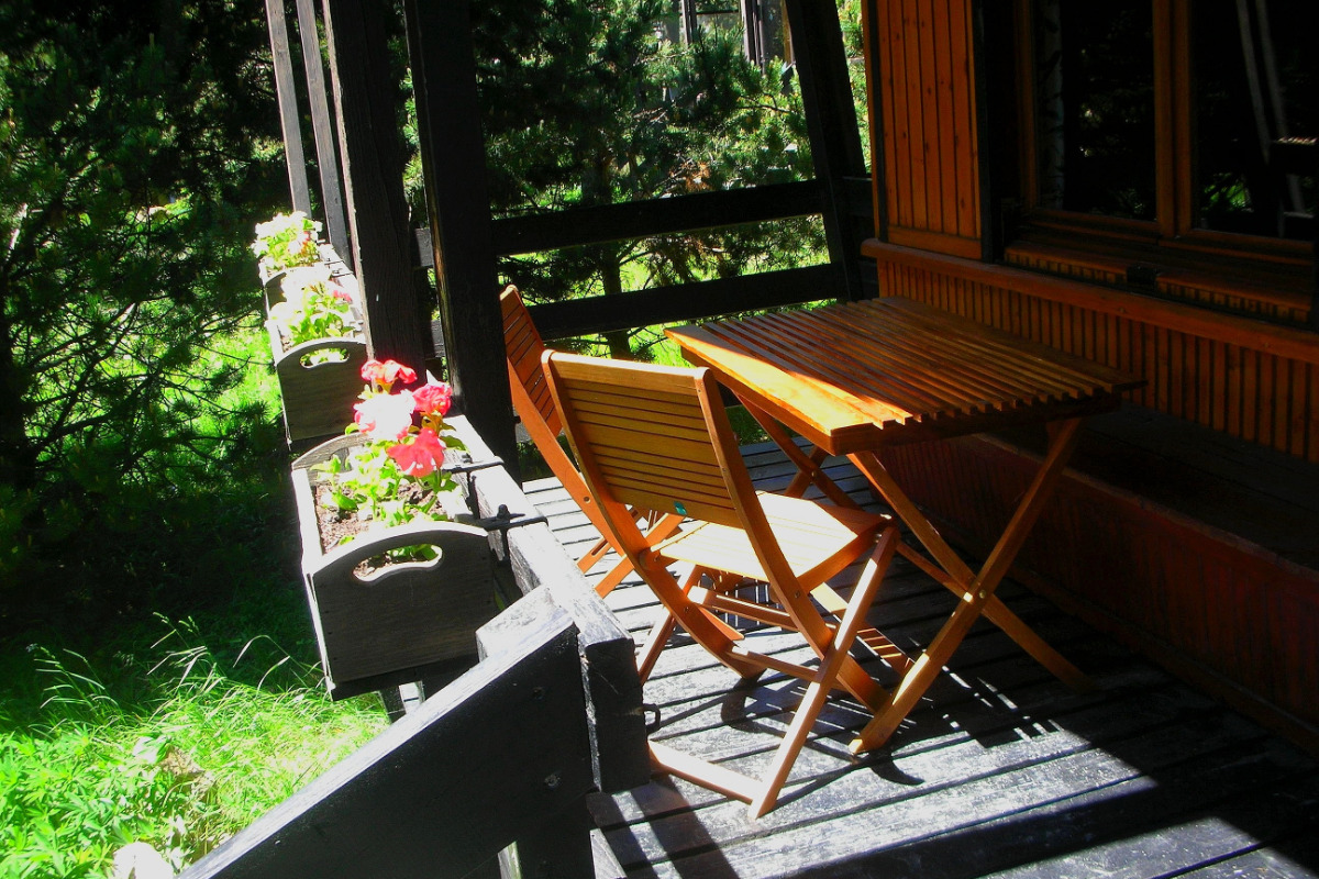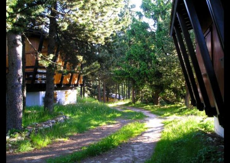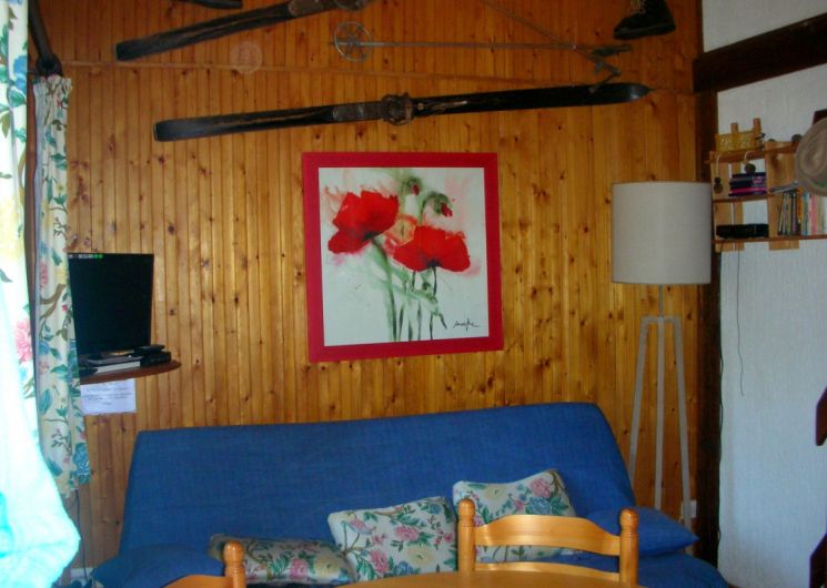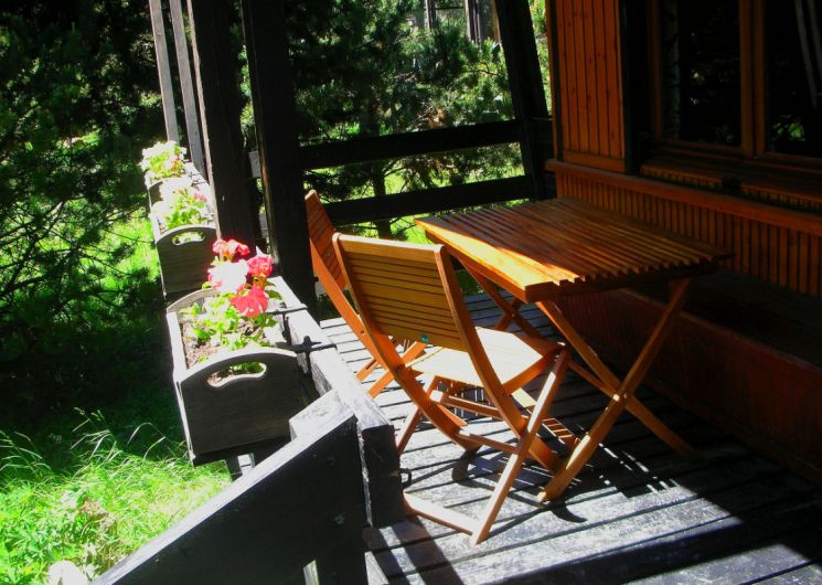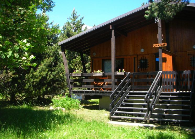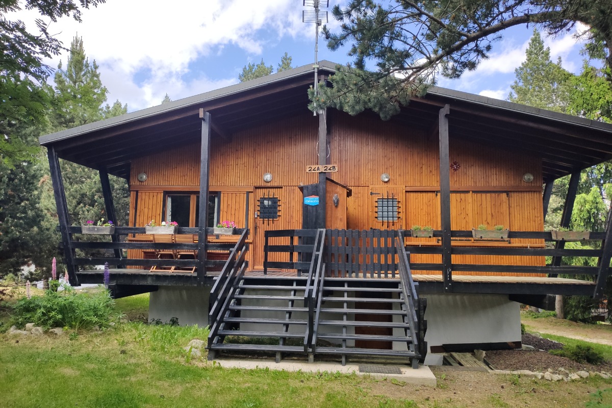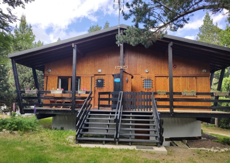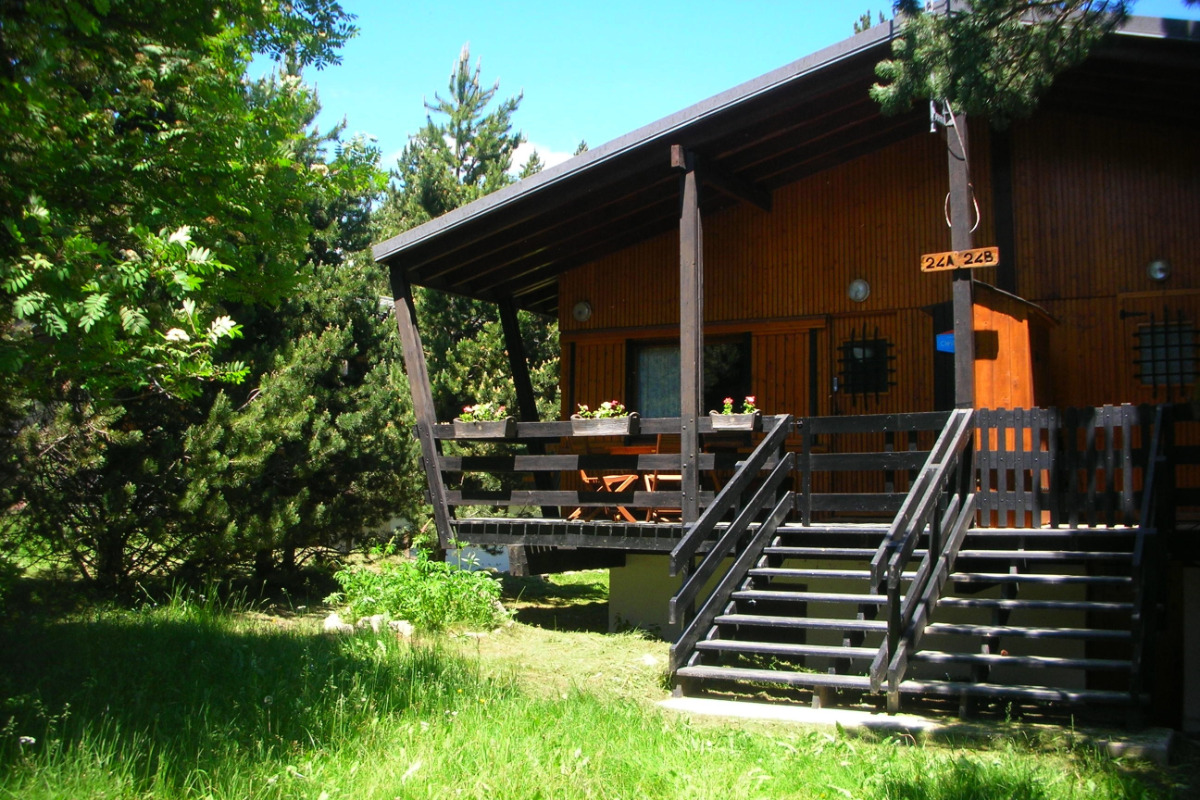 Chalet semi-indépendant T2 composé de : 1 séjour/coin-cuisine (canapé-lit 140) – 1 chambre (lit 140) -1 salle de bain/wc séparés. une terrasse de 10 m2 Au milieu des pins – A proximité des commerces et des départs de randonnées. Exposition sud-sud ouest.