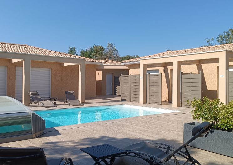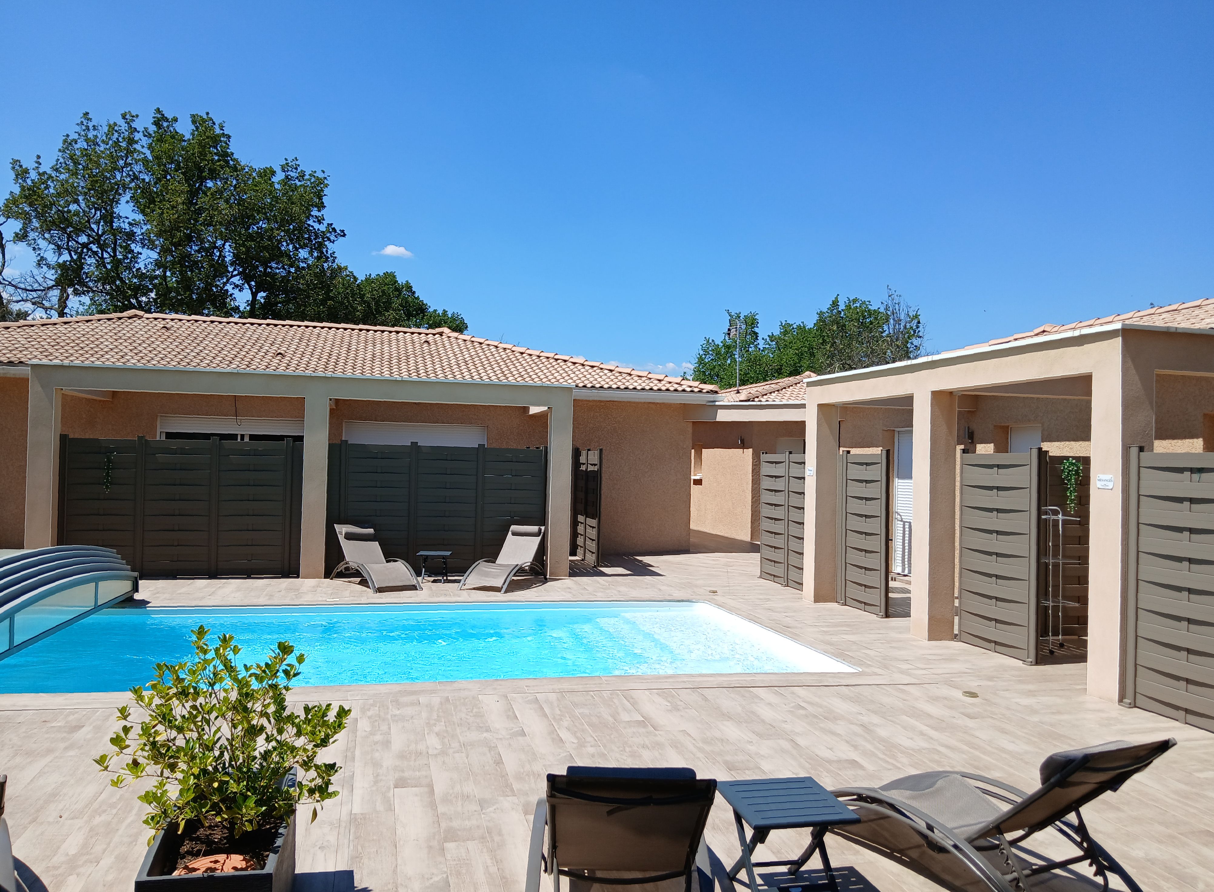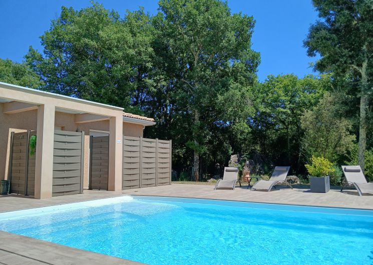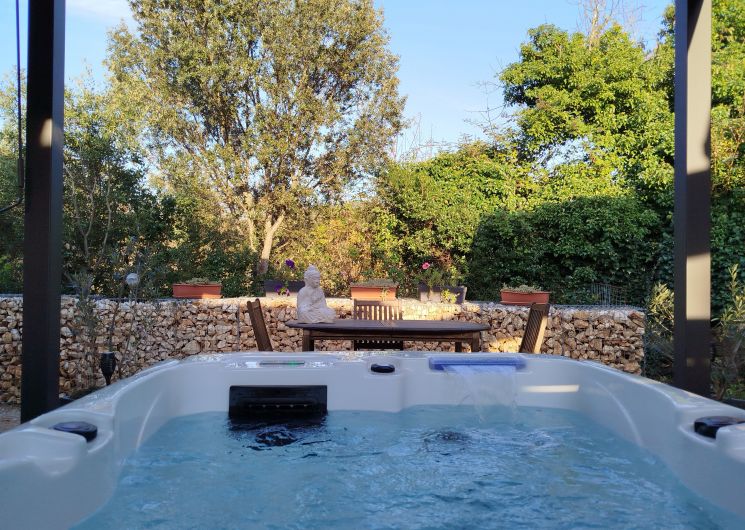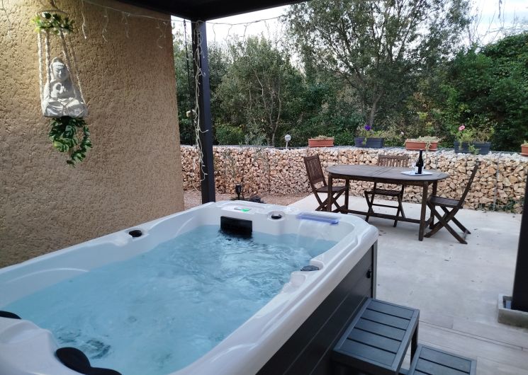 Le domaine Chante-Cévennes, sur la commune de Saint Martin de Londres, vous accueille au Frouzet, petit hameau typique au cœur de la vallée de l’Hérault, à l’entrée des Cévennes. (25km au nord de Montpellier) Le Nid des Hirondelles est totalement indépendant, au sein d’une forêt-jardin. Spécialement conçu pour les duos, il est tout confort, avec accès direct à la piscine. Espace privatif extérieur avec JACUZZI haut de gamme, 1H, supplément de 30€, luminothérapie, aromathérapie, bain bulles, jets massants, 2 places allongées, cascade, désinfection à l’ozone. Piscine commune pour 4 appartements. Non chauffée, couverte (abri télescopique), température idéale dès la demi-saison, 8 x 4 mètres. Climatisation, lit 160 (QueenSize), baie vitrée avec terrasse privative. Plaque à induction, four, micro-ondes, cafetière expresso, bouilloire, machine à laver la vaisselle et le linge TV fibre, WIFI gratuit. Plancha, planche et fer à repasser sont à disposition. Parking à l’intérieur du Domaine