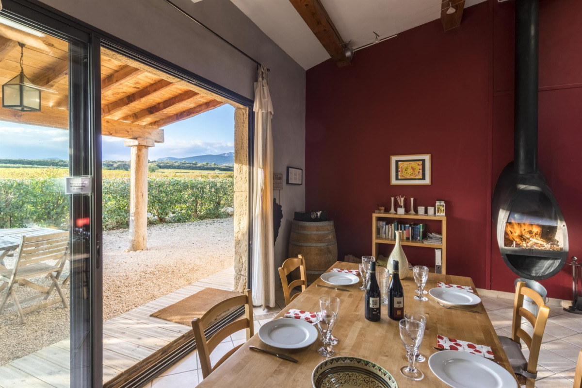 À seulement 5 minutes de Saint-Guilhem-le-Désert et des Gorges de l’Hérault, le Domaine des Condamines vous accueille pour un séjour paisible au cœur de la nature, entre vignes, oliviers et montagnes. A proximité du vieux mas languedocien bâti en 1830, un bâtiment agricole de 225 m2 et 4,50 m sous plafond a été rénové pour vous accueillir dans l’un des 3 grands gîtes qui le composent. Chaque gîte a son jardin indépendant. Découvrez le gîte « La Lucque », une maison spacieuse et lumineuse avec : Un séjour chaleureux avec cheminée contemporaine et TV écran plat. Une cuisine américaine entièrement équipée (réfrigérateur/congélateur, micro-ondes, cafetière, lave-vaisselle, lave-linge, grille pain, hotte, plaque vitrocéramique et four). Deux chambres : une avec lit double (160×200), une avec deux lits simples (90×200). Une salle d’eau élégante avec douche en pierre et colonne hydromassante. Profitez d’un jardin privatif clôturé avec terrasse couverte et barbecue, parfait pour vos repas en plein air. Espaces extérieurs communs : Piscine sécurisée (12×6 m, ouverte de mai à octobre) avec transats et plage en teck. Grand jardin paysager (1 hectare) : cyprès, pins, pinède ombragée et allées fleuries. Activités et attractions à proximité : Saint-Guilhem-le-Désert, l’un des plus beaux villages de France. Les Gorges de l’Hérault (canoë, baignade), le pont du Diable et la grotte de Clamouse. Le lac du Salagou et le cirque de Mourèze pour des balades uniques. Informations pratiques : Formule tout compris, équipement bébé sur demande. Animaux acceptés avec accord préalable. Le chemin d’accès s’arrête à l’entrée du Domaine, la route et les premières maisons sont à 1 km, vous n’entendez que le silence, les oiseaux et les cigales et ne voyez que vignes, oliviers et montagnes.