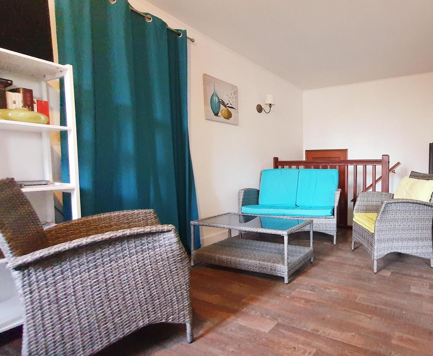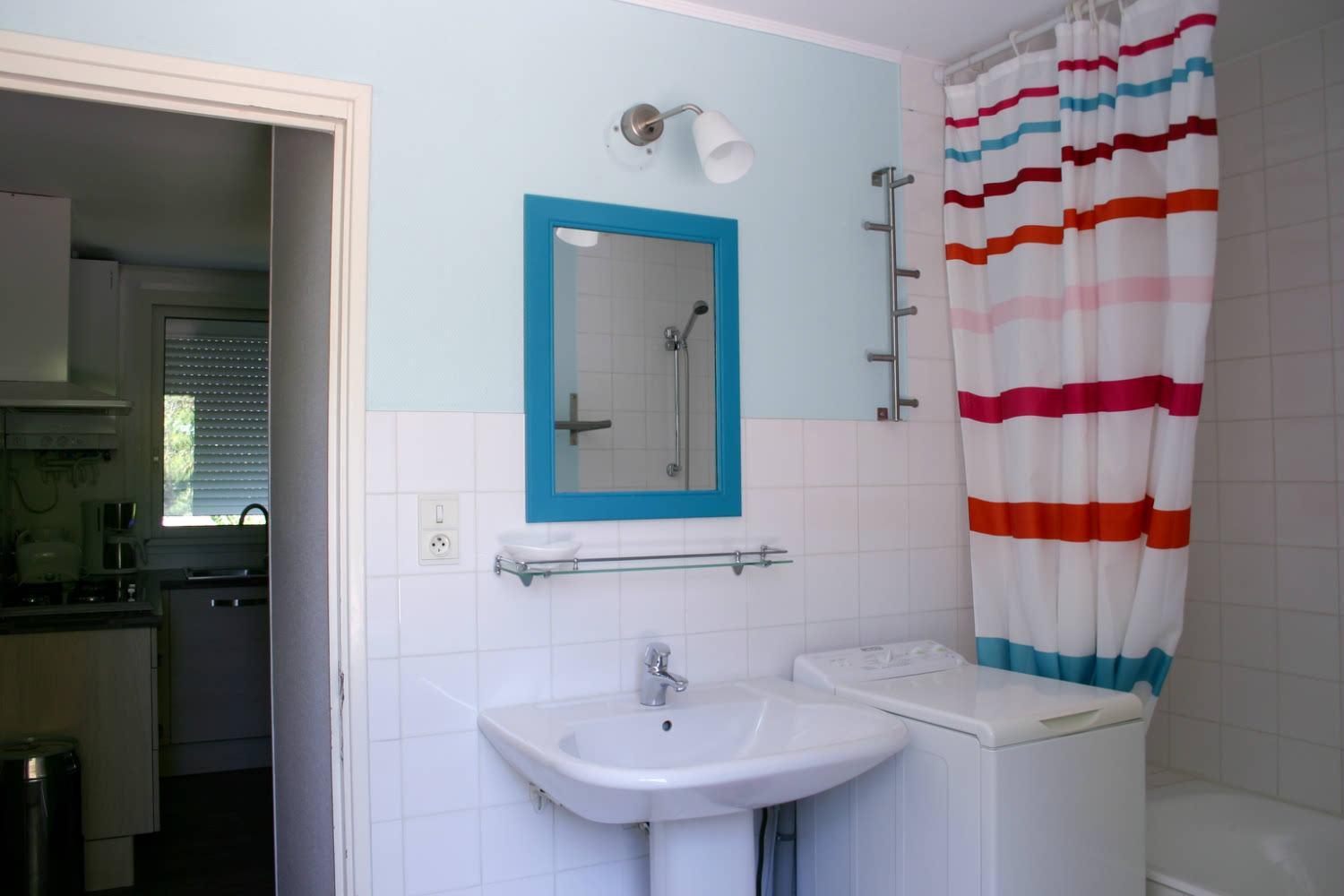 En demi-niveaux : séjour/cuisine ouverte. 2 chambres (1 lit 160×200, 2 lits 90×200), salle de bain, wc indépendant. Lave vaisselle et lave-linge privatif.