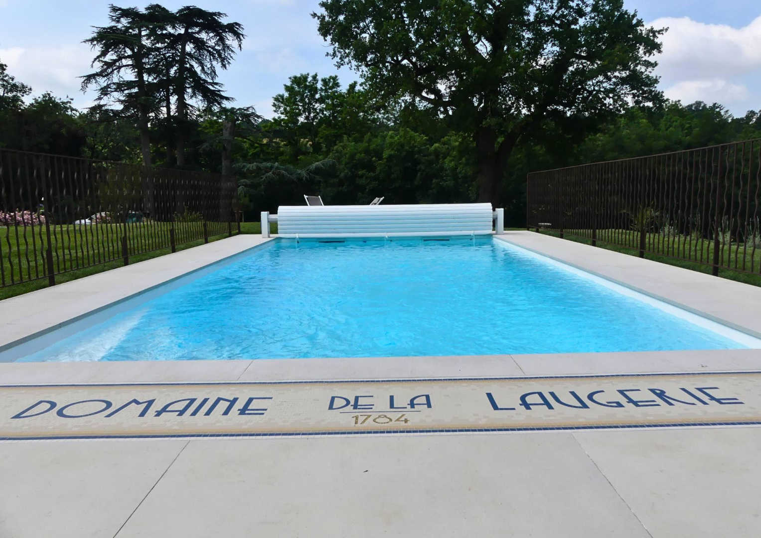 La piscine sécurisée par volet et barrière (8,5×4,4m, profondeur 1,5m). Piscine à partager. Sur place, boules de pétanques, ping-pong, jeux de société.