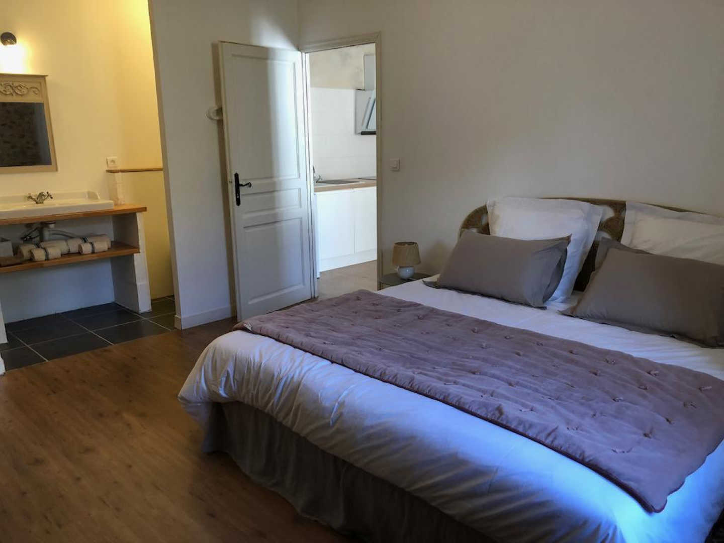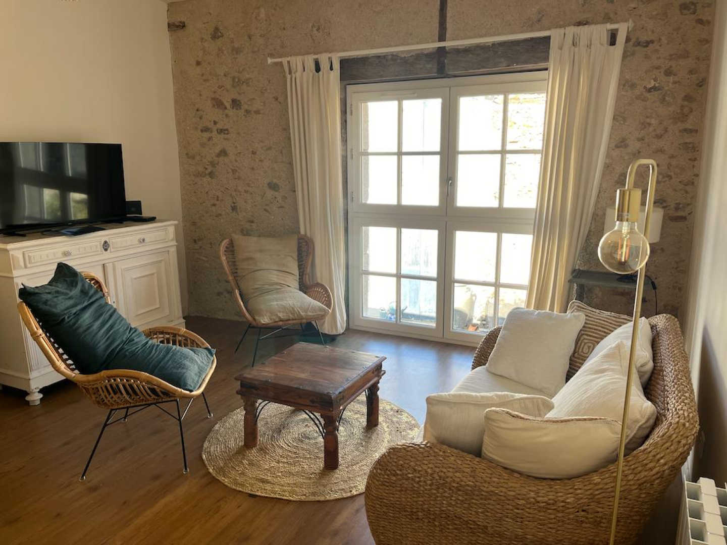 Le gîte est entièrement rénové et décoré avec soin. Murs en pierres apparentes, parquets, grande baie vitrée dans le salon.