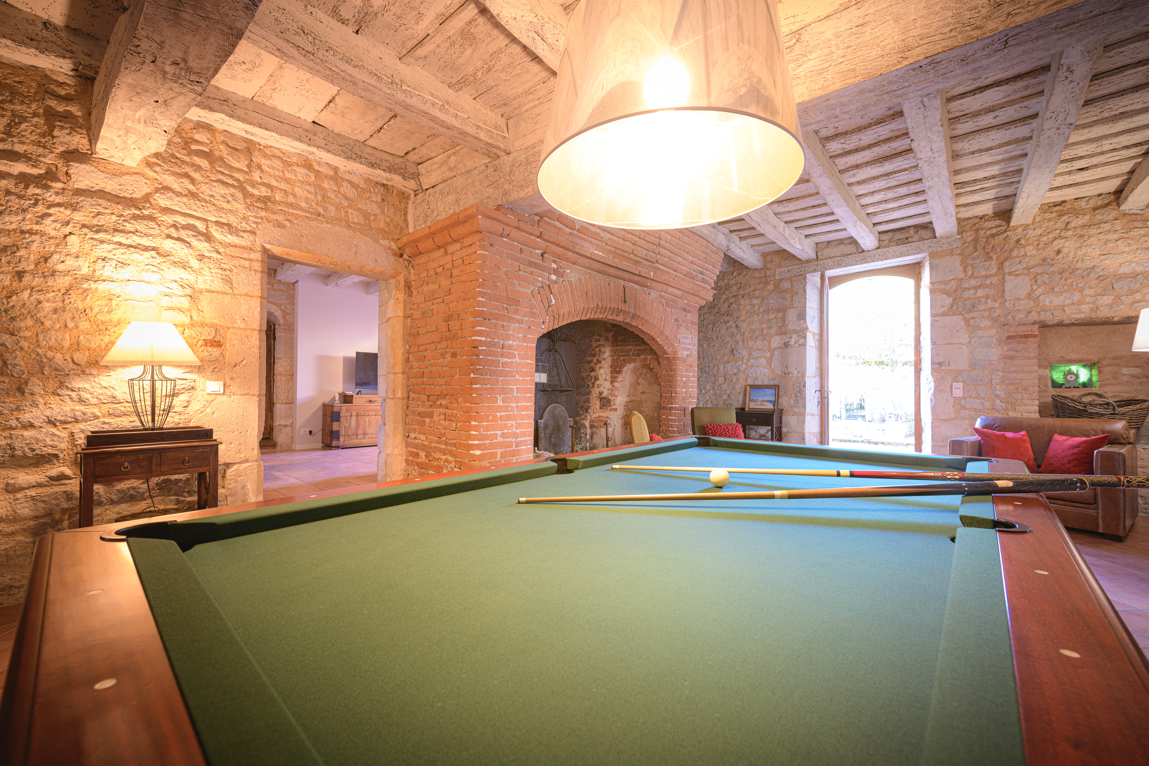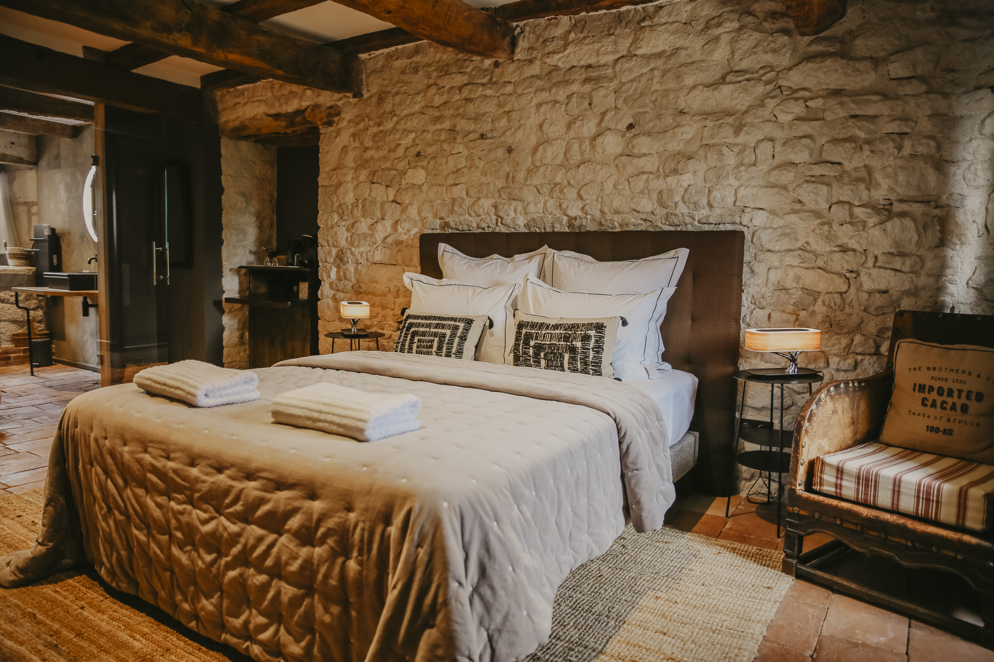 Derrière cette imposante façade XIXe, se cache un patio bien plus ancien, bordé d’arcades de briquettes qui ont, parait-il, abrité les moines de Bernac. Dans le parc, l’ombre oblique des pins parasols invite à la promenade, tandis que les oies glissent sur l’étang, le temps suspend son cours… Pour les plus actifs, la piscine entourée de buis derrière ses murs de pierre sèche offre ses terrasses de bois et une superbe vue champêtre. Si vous avez l’âme vagabonde, les vélos électriques à votre disposition vous permettront de battre la campagne sans efforts.